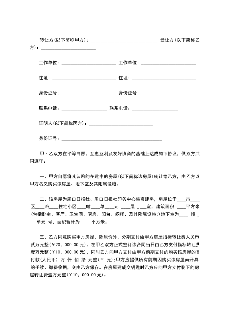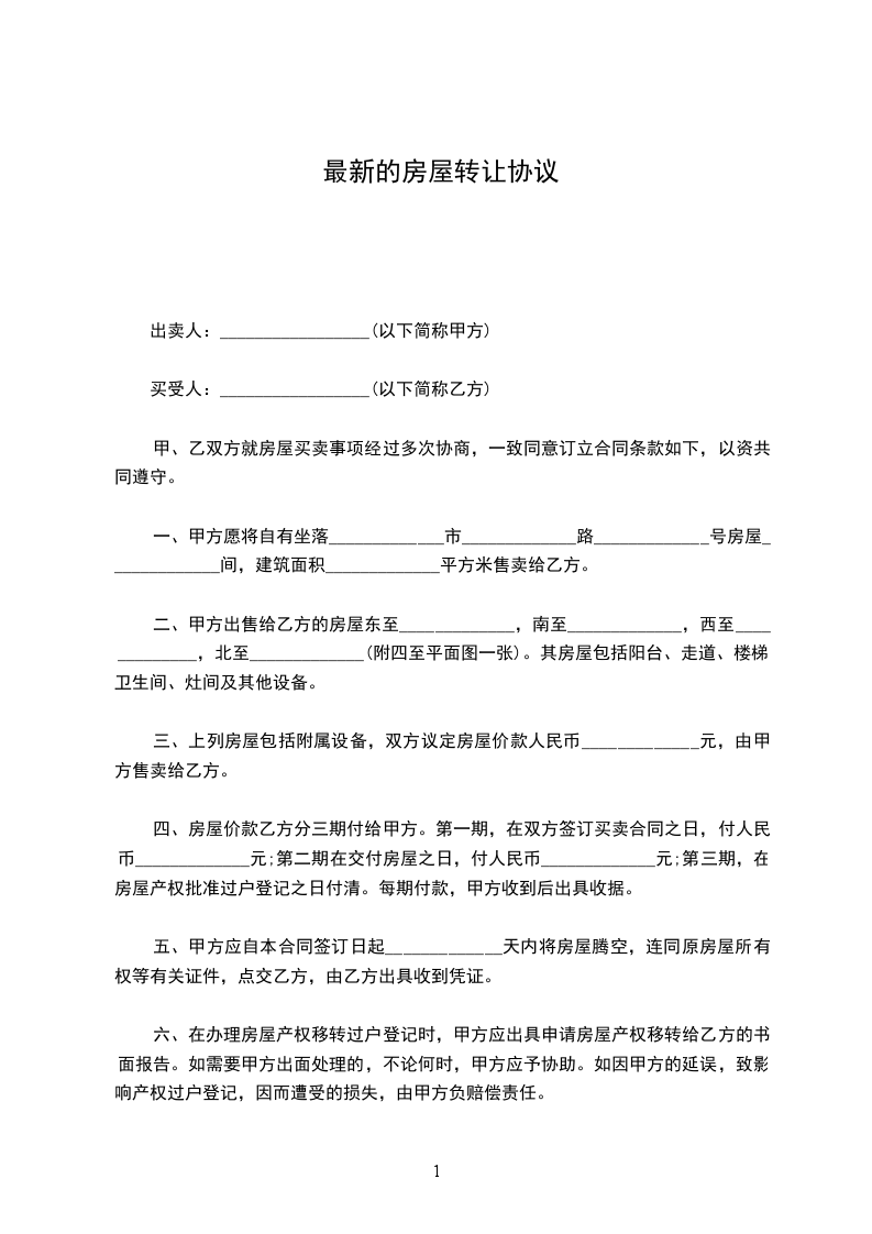 一、甲方愿将自有坐落_____________市_____________路_____________号房屋_____________间,建筑面积_____________平方米售卖给乙方。