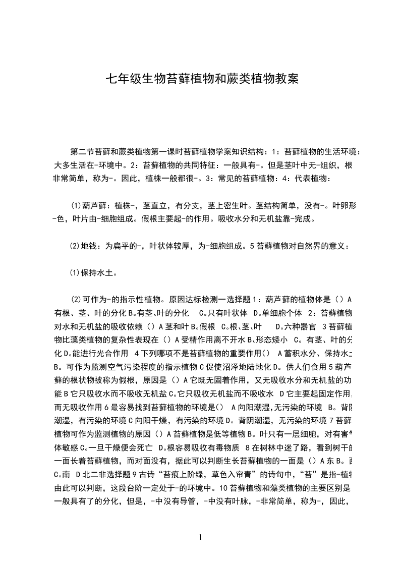 第一章生物圈中有哪些绿色植物第一节藻类、苔藓和蕨类植物