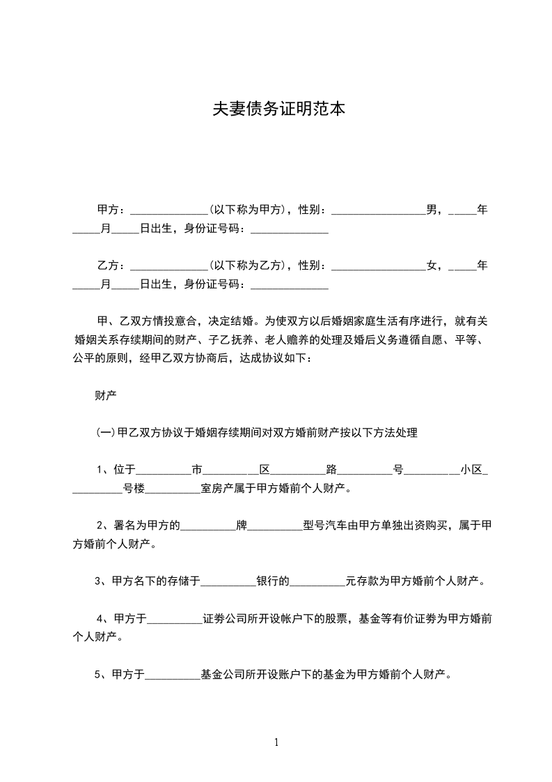 2、署名为甲方的__________牌__________型号汽车由甲方单独出资购买,属于甲方婚前个人财产。