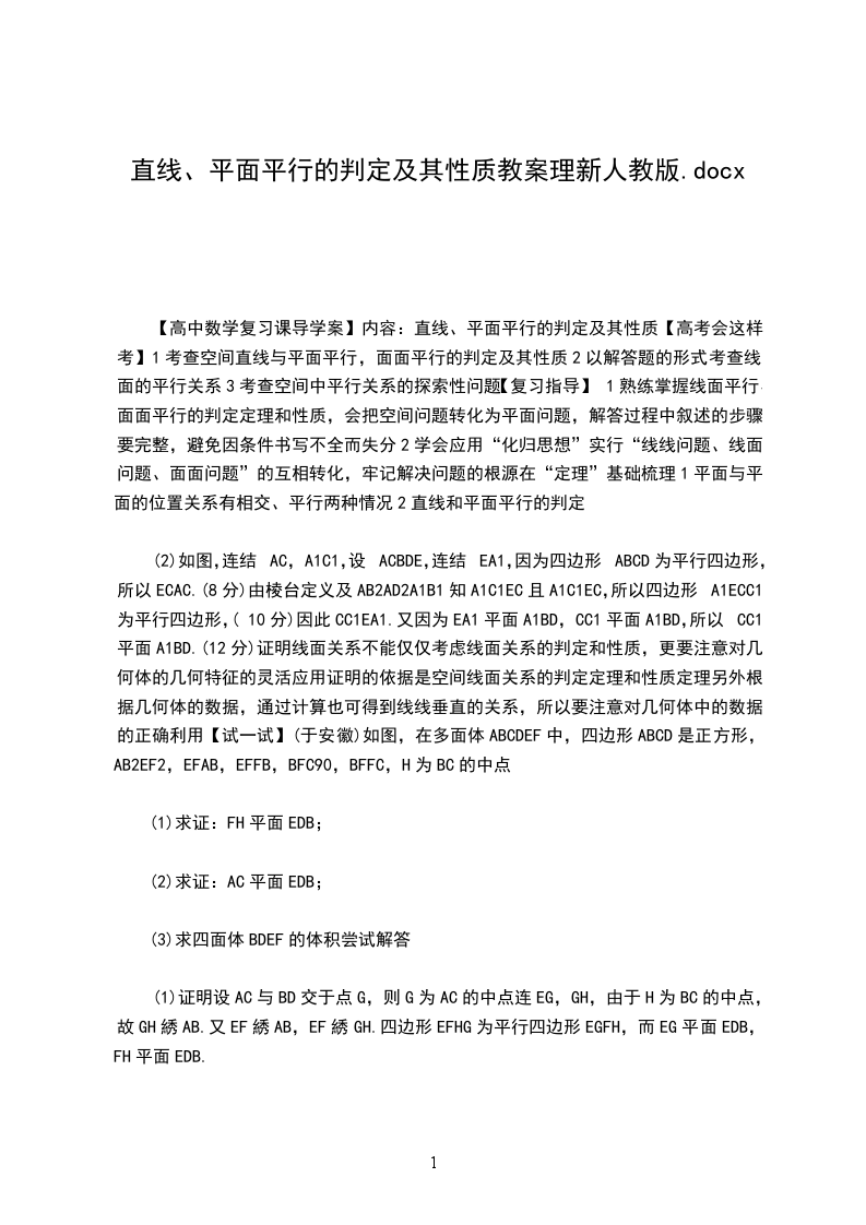 2、平行线的判定和性质的灵活运用。学习难点:平行线的判定和性质的灵活运用。教学过程:导入: