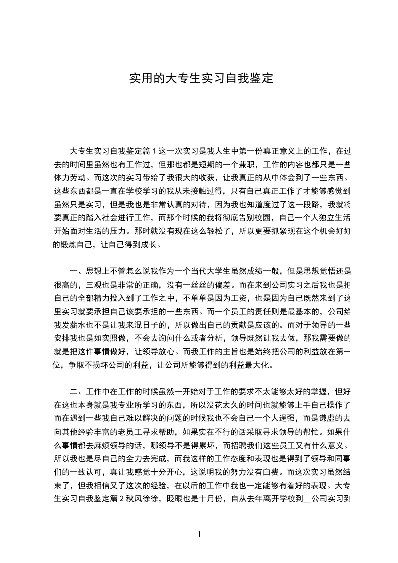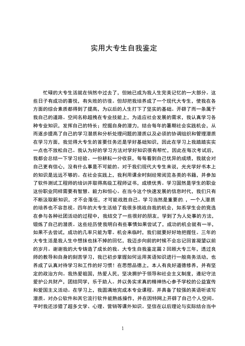 忙碌的大专生活就在悄然中过去了,但她已成为我人生完美记忆的一大部分。这些日子有成功的喜悦,有失败的彷徨。但却把我培养成了一个现代大专生,使我在各方面的综合素质都得到了提高,为以后的人生打下了坚实的基础。开辟了而一条属于我自己的道路。空间名称超拽在专业技能上,为适应社会发展的需求,我认真学习各种专业知识,发挥自己的特长;挖掘自身的潜力,结合每年的暑期社会实践机会,从而逐步提高了自己的学习潜质和分析处理问题的潜质以及必须的协调组织和管理潜质。在学习方面,我觉得大专生的首要任务还是学好基础知识,因此在学习上我踏踏实实,一点也不放松自己。我认为好的学习方法对学好知识很有帮忙,因此在每次考试后,我都会总结一下学习经验。一份耕耘一分收获,每每看到自己优异的成绩,我就会对自己更有信心,没有什么事是不可能的。对于我们现代大专生来说,光光学好书本上的知识是远远不够的。在社会实践上,我利用课余时刻经常阅览各类的书籍,并参加了软件测试工程师的培训并取得高级工程师证书,成绩优秀。学习固然是学生的职业,这份职业同样需要有智慧、毅力和恒心。在当今这个快速发展的信息时代,我们只有不断汲取新知识,才不会落伍,才可能战胜自己。学习当然是重要的.,一个人潜质的培养也不容忽视。四年的大专生活给了我很多挑战自我的机会,如系学生会的竞选。在参与各种社团活动的过程中,我结交了一些很好的朋友,学到了为人处事的方法,锻炼了自己的潜质。这些经历使我明白有些事情如果尝试了,成功的机会就有一半,如果不去尝试,成功的几率只能为零。机会来临时,我们就要好好地把握住。三年的大专生活是我人生中想抹也抹不掉的回忆,我迈步向前的时候不会忘记回首凝望以前的岁月。谢谢我的大专铸造了成长的我。大专生自我鉴定篇2回顾大专三年,透过良师的教导和自身的刻苦学习,我已初步掌握如何运用英语知识进行一般商务活动,也养成了认真对待学习和工作的好习惯!在思想品德上,本人有良好道德修养,并有坚定的政治方向。我热爱祖国,热爱人民,坚决拥护于领导和社会主义制度,遵纪守法,爱护公共财产,团结同学,乐于助人。并以务实求真的精神热心参予学校的公益宣传和爱国主义活动。在学习上,我圆满地完成本专业课程。并具备了较强的英语听读写潜质。对办公软件和其它流行软件能熟练操作,并在因特网上开辟了自己个人空间。平时我还涉猎了超多文学、心理、营销等课外知识。坚信在以后理论与实际结合当中,能有更大提高!在生活上,我崇尚质朴的生活,并养成良好的生活习惯和正派的作风。此外,对时刻观念性十分重视。由于平易近人待人友好,因此一向以来与人相处甚是融洽。敢于拼搏刻苦耐劳将伴随我迎接未来新挑战。在工作上,我透过加入院学通社与合唱团,不但锻炼自己的组织交际潜质,还深刻地感受到团队合作的精神及凝聚力。更加认真负责对待团队的任务,并以此为荣!作为新时代青年,我不会正因自己的大专文凭而失去自信,反而我会更加迫切要求自己充实充实再充实。完善自我石我未来目标。而且我坚信用心必须能赢得精彩!良禽择木而栖,士为伯乐而荣,勤奋的我将以不怕输的韧劲融入社会。愿借您的慧眼,开拓我人生旅程!大专生自我鉴定篇3在思想品德上,我有良好道德修养,并有坚定的政治方向。我热爱祖国,热爱人民,坚决拥护于领导和社会主义制度,遵纪守法,爱护公共财产,团结同学,乐于助人。并以务实求真的精神热心参予学校的公益宣传和爱国主义活动。学习上,我圆满地完成本专业课程。并具备了较强的英语听读写能力。对OFFICE办公软件和其它流行软件能熟练操作,平时我还涉猎了大量文学、心理、营销等课外知识。相信在以后理论与实际结合当中,能有更大提高!在生活上,我崇尚质朴的生活,并养成良好的生活习惯和正派的作风。此外,对时间观念性十分重视。由于平易近人待人友好,所以一直以来与人相处甚是融洽。敢于拼搏刻苦耐劳将伴随我迎接未来新挑战。作为积极乐观新时代青年,我不会因为自己是大专文凭而失去自信心,反而我会更加迫切要求自己充实充实再充实。完善自我实现未来目标。我相信:努力一定能赢得精彩!塑造一个健康,充满自信的我,自信来自实力,但同时也要认识到,眼下社会变革迅速,对人才的要求也越来越高,社会是在不断变化,发展的,要用发展的眼光看问题,自身还有很多的缺点和不足,要适应社会的发展,得不断提高思想认识,完善自己,改正缺点。要学会学习,学会创新,学会适应社会的发展要求。