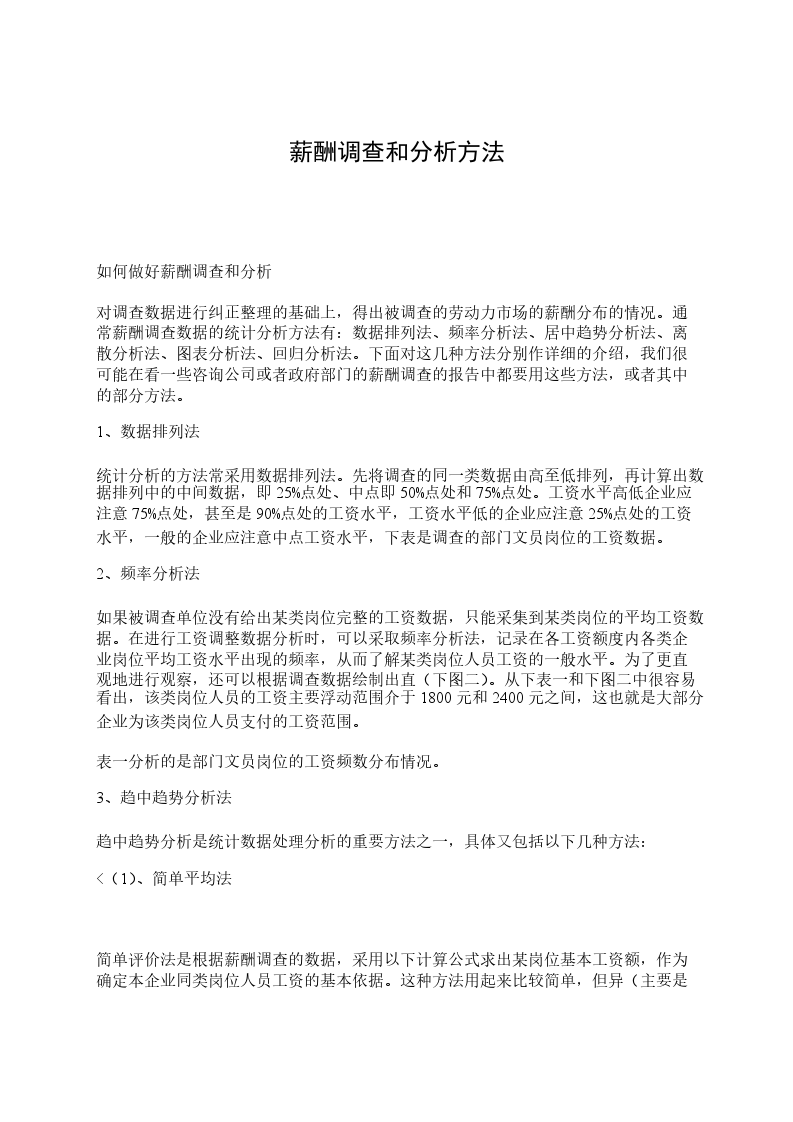 20__年度珠三角企业薪酬调查报告(简明版)广东XX公司中华薪酬网于珠三角企业薪酬调查报告共前言尊敬的各位朋友:企业管理的核心其实就是对人的管理,提高人力资源管理水平,不仅是提高公司竞争力的需要,也是公司基业长青的重要保证,更是公司充分开发自身潜能、适应时代潮流、承担社会责任的重要措施。人才已经成为企业竞争优势和发展机遇的重心,而薪酬作为引进人才的入口,不仅可以调动人才工作的积极性,激励员工做出支持企业战略实现的行为;而且可以增强企业自身的竞争力,推动企业不断发展。人才竞争日益激烈,企业如何引进、保留合适的人才,成为企业管理者关心的热门话题。随着经济形势和用工环境的变化,珠三角地区的企业经营管理面临着同样的人才挑战和压力,特别是薪酬管理,对珠三角企业经营管理带来的挑战更加突出。鉴于薪酬管理已成为珠三角企业管理中的热点和难点问题,智通人才与中华薪酬网强强联合,特地组织1200家珠三角企业参与“20__年度珠三角企业薪酬调查”。本着让企业和个人之间实现薪酬契合、共同发展的理念,我们希望20__年度打开企业的人力资源薪酬管理视角,让您更清晰的了解珠三角企业在薪酬管理方面的现状和特点,全面了解珠三角地区人力资源薪酬管理的发展趋势,以及不同行业、不同城市之间存在的薪酬差异,为所有人力资源管理者们提供一个人才竞争、调薪、控制人力成本的参考依据。希望本报告可以帮助珠三角地区企业搭建一个良好的人才引进、人才发展平台,不断推动企业取得卓越成绩!广东XX公司中华薪酬网20__年十一月十日数据处理方法在本报告中,对回收数据的处理是依照如下流程进行的。首先,我们对回收样本数据进行确认和审核,其次我们应用社会科学统计软件对样本数据进行描述统计、线性相关性、方差检验等统计分析,并用平均数、分位值、频数等反映数据的集中趋势和分布情况。本报告中主要应用的统计概念如下:分位值:分位值代表该数值对应的在同一自变量对应的因变量集合中所处的位置。如中位(或50分位)代表该数值在某一自变量对应的因变量集合中处于中间位置。本报告中主要应用到25分位,50分位(即中位),75分位。25分位值:表示有25%的数据小于此数值,反映市场的较低端水平。50分位值(中位值):表示有50%的数据小于此数值,反映市场的中等水平。75分位值:表示有75%的数据小于此数值,反映市场的较高端水平。平均值:所有数据的平均值,反映市场的平均水平。职位等级本报告从高级、中级、初级三个维度对职位进行层级划分,每个级别分出不同的层级,并规定了各层级说明书(详见表1)。表1职位层级划分层级层级说明书等级职位族高级决策层包括设定公司远景的岗位,这些岗位通常会通过制定公司战略,协调子公司、事业部等公司层面的群体间关系,对公司整体经营目标的实现产生重要的影响,如:执行董事、总经理等岗位。21总裁/董事长/执行董事20总经理级19总经理级高级管理层主要包括制定战略的岗位,这些岗位通常通过制定重点部门的目标,协调部门关系等方式,对公司中长期目标的达成产生重要的影响,如:副总经理等岗位。18副总经理级17副总经理级16副总经理级中级经营管理层主要包括制定经营计划的岗位,这些岗位通常通过制定制度,协调部门内部人员关系,带领团队完成项目等方式,对公司和部门的短期目标产生影响,如:财务经理、项目经理、销售经理等岗位。15部门经理级/总监级14部门经理级/总监级13部门经理级/总监级高级专业人员层主要包括督导日常工作的岗位,这些岗位通常通过业务监督和帮助等手段,参与并带领团队开展日常的工作,对完成部门当前的任务产生影响,如:高级工程师、高级销售代表、高级财务分析师等岗位。12专业经理级11专业经理级10专业经理级初级专业人员层主要包括独立完成工作的岗位,这些岗位通常运用自身的专业知识和技能,完成具有一定困难的工作,如:销售、工程师、会计等岗位。9主管级8主管级7主管级初级专业人员层主要包括协助他人完成工作的岗位,这些岗位通常在他人的带领下,运用自身的专业知识和技能,完成简单的明确的任务,如:前台、出纳、司机等岗位。6专员级5专员级4专员级操作人员层主要包括完成体力工作的岗位,如:技术工人、保安、保洁等岗位。3助理级2助理级1助理级注:根据职位评估,相同企业内、即使相同岗位,不同专业的管理者职位价值并不相同,一般情况下各专业岗位价值大,综合管理部门价值偏小,所以会出现总监与经理并列现象。职位说明书本报告将不同的层级划分为21个职位族,用序号1-21表明各职位族的等级,同时规定了职位族说明书(详见表2)。表2职位等级说明书等级职位族职位族说明书21总裁/董事长/执行董事制定公司战略计划,推进战略发展,加强公司管理,达成公司战略目标。20总经理级制定公司战略计划,推进公司重大运营计划,优化公司管理体系。19总经理级协助制定公司战略计划,协调部门关系,优化公司运营管理。18副总经理级制定部门战略目标,卓越完成目标任务,对公司中长期目标有积极的推动作用。17副总经理级制定部门战略目标,推进目标任务实施,并对公司中长期目标达成产生积极影响。16副总经理级制定部门战略目标,推进目标任务实施。15部门经理级/总监级制定部门