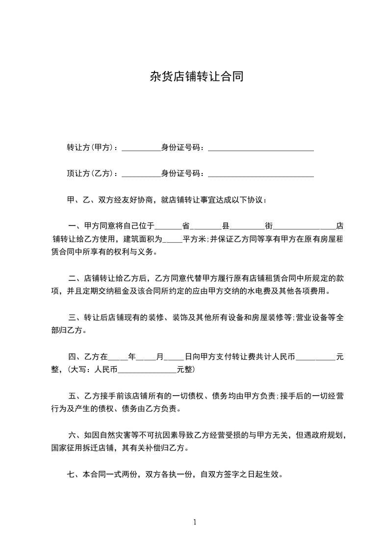 1.经双方商定,该企业财产转让成交总价为人民币_________________万元。