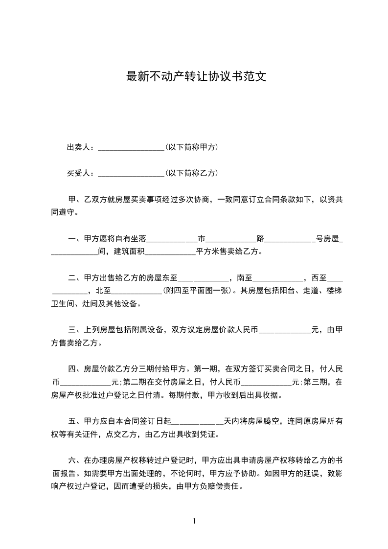 一、甲方愿将自有坐落_____________市_____________路_____________号房屋_____________间,建筑面积_____________平方米售卖给乙方。