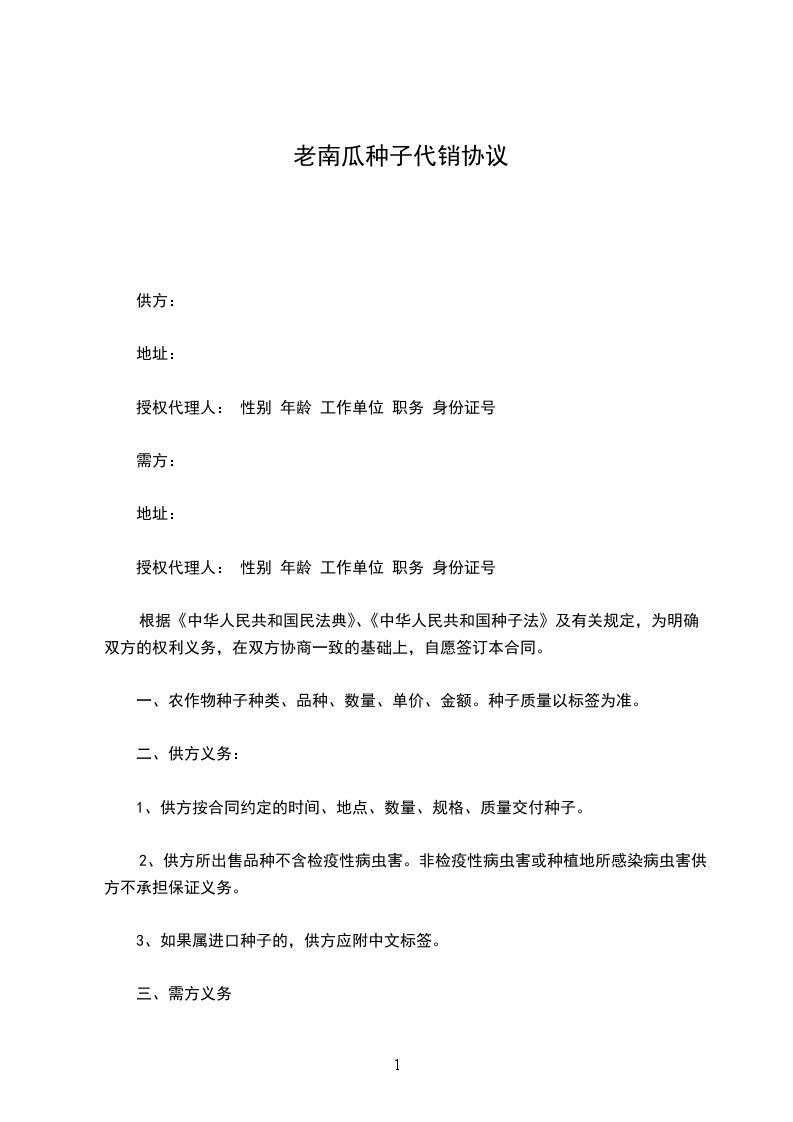 根据《中华人民共和国民法典》、《中华人民共和国种子法》及有关规定,为明确双方的权利义务,在双方协商一致的基础上,自愿签订本合同。