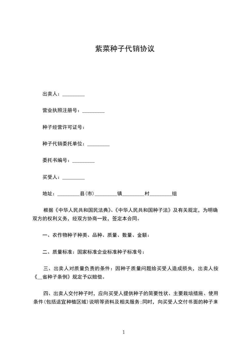 根据《中华人民共和国民法典》、《中华人民共和国种子法》及有关规定,为明确双方的权利义务,经双方协商一致,签定本合同。