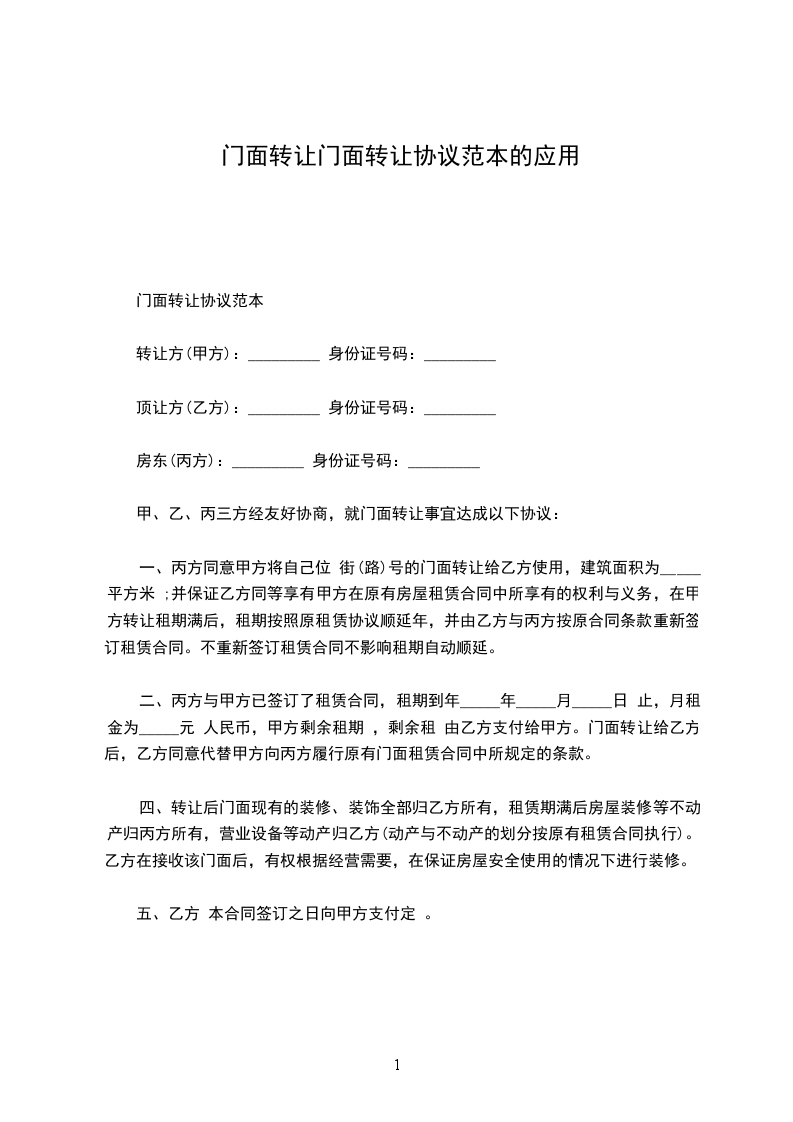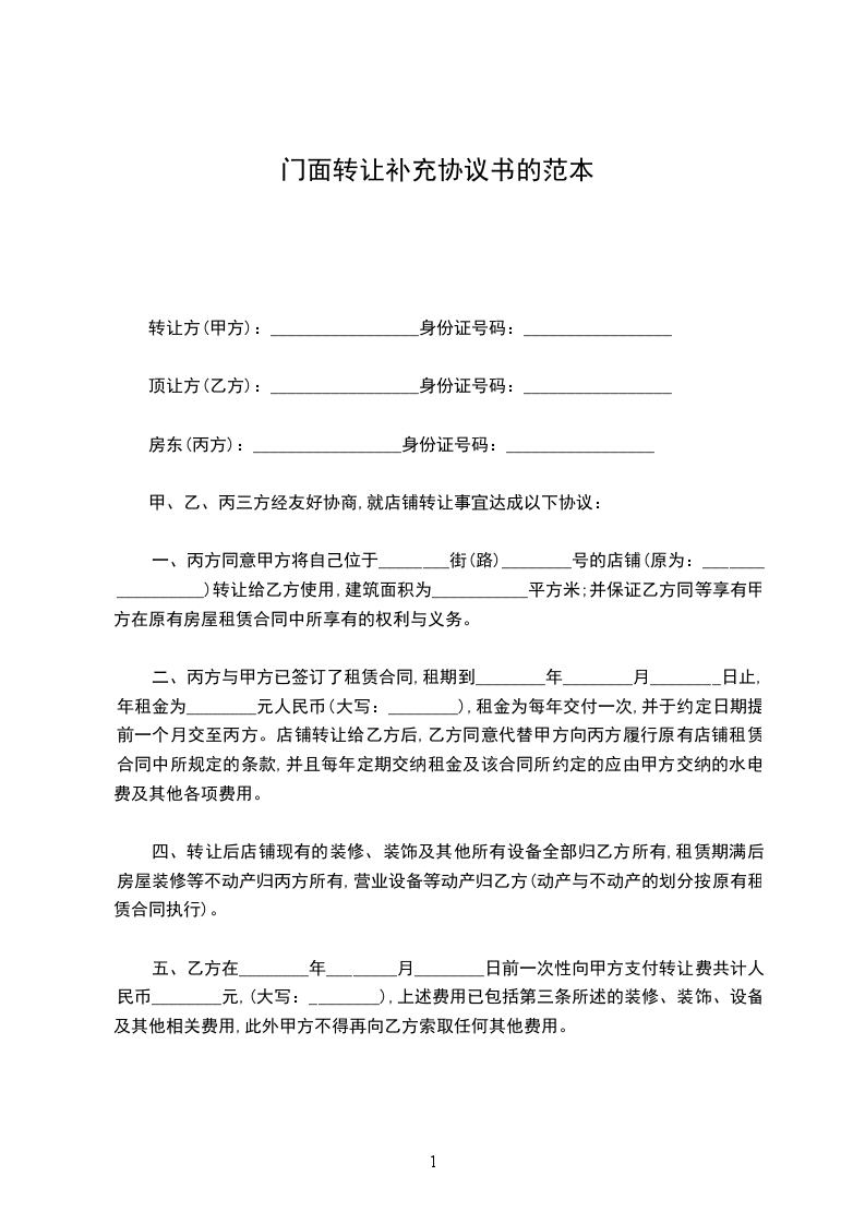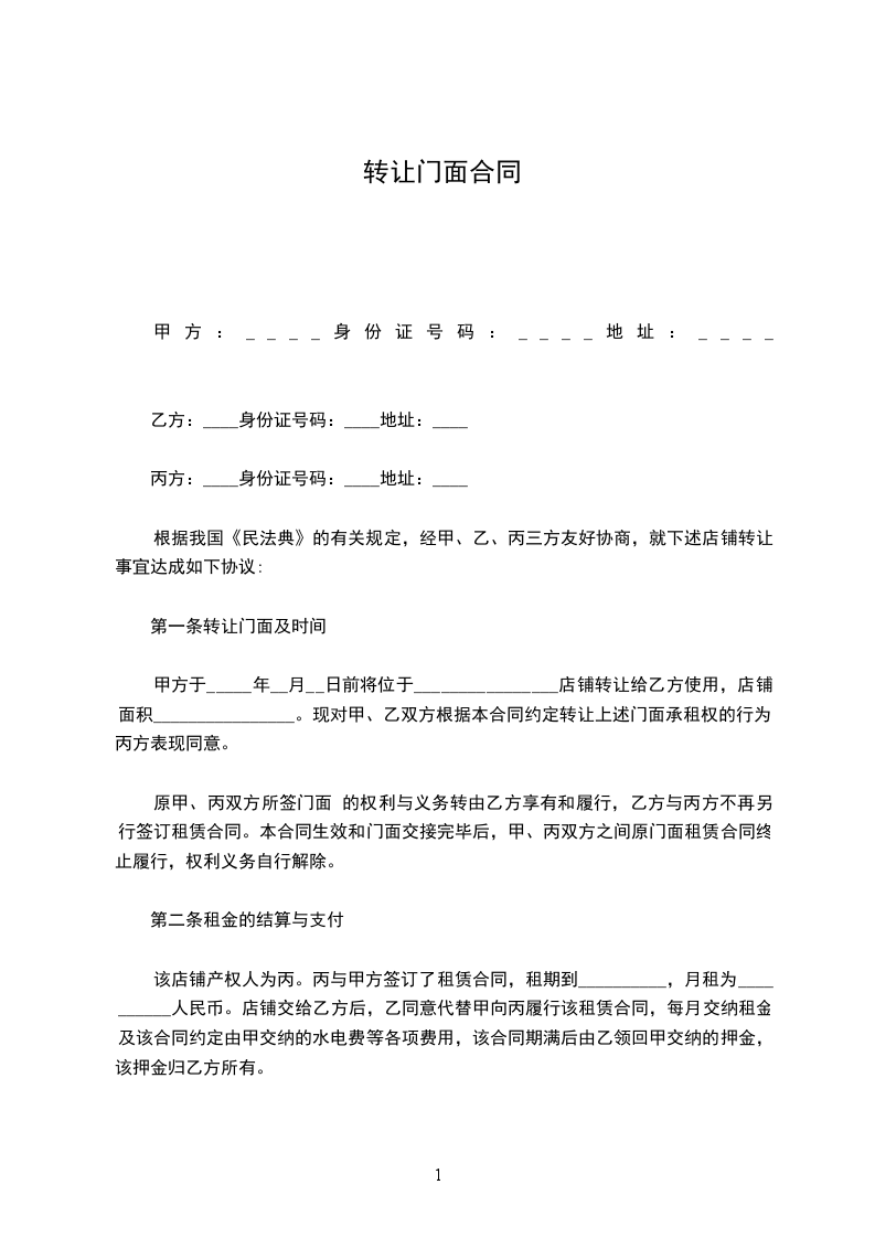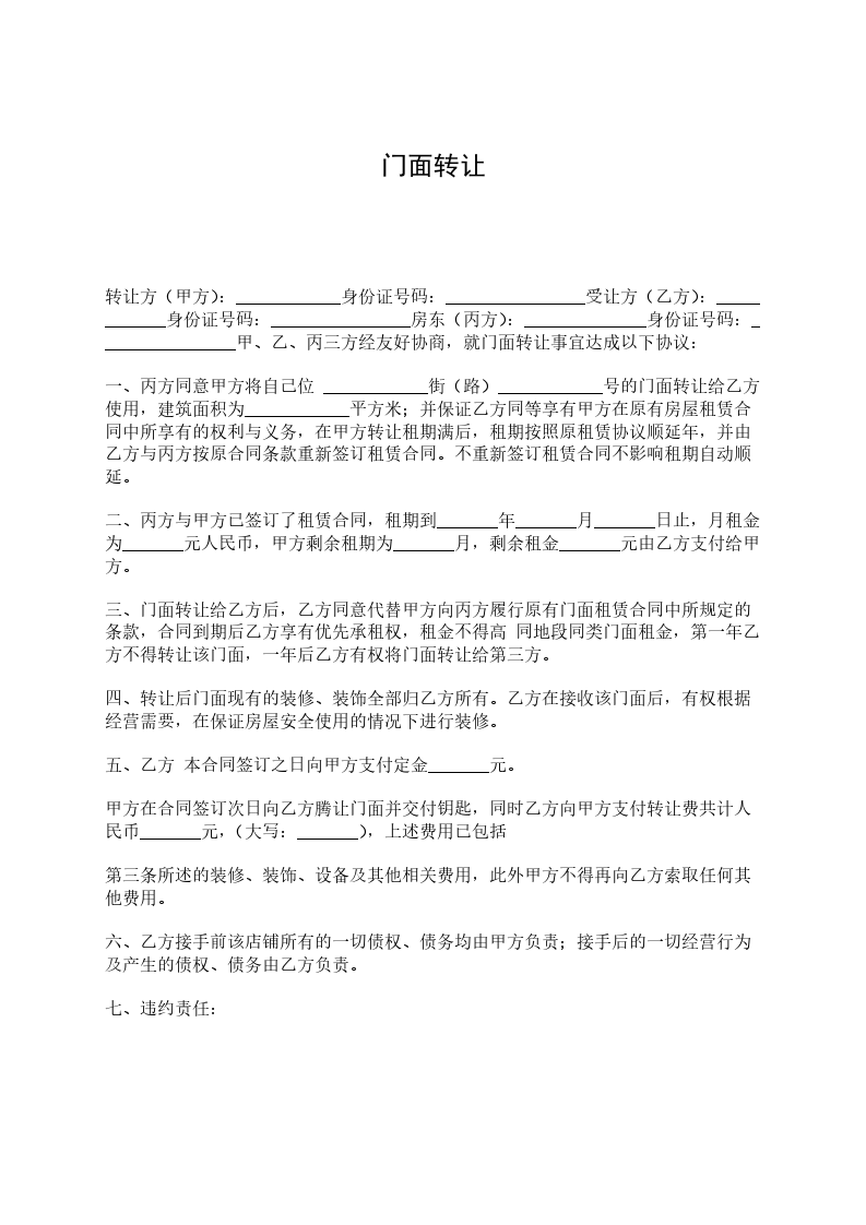 甲、乙、丙三方经友好协商,就店铺转让事宜达成以下协议: