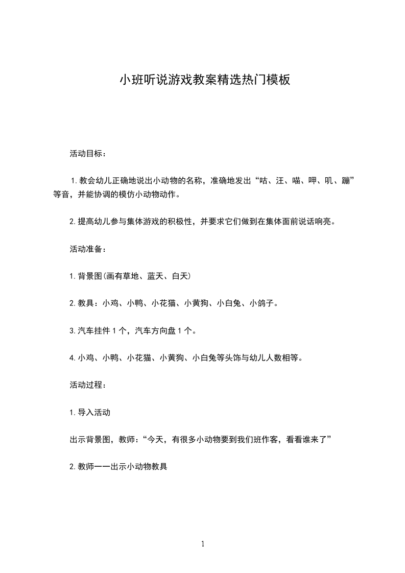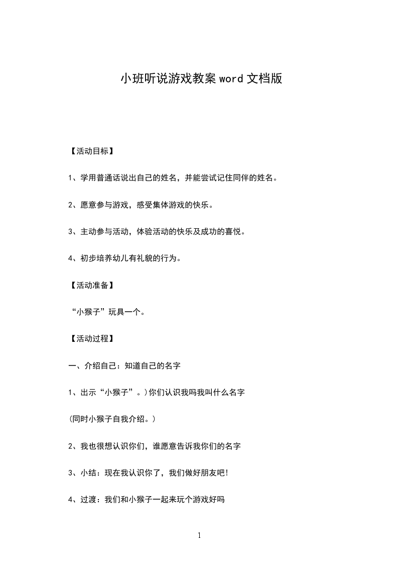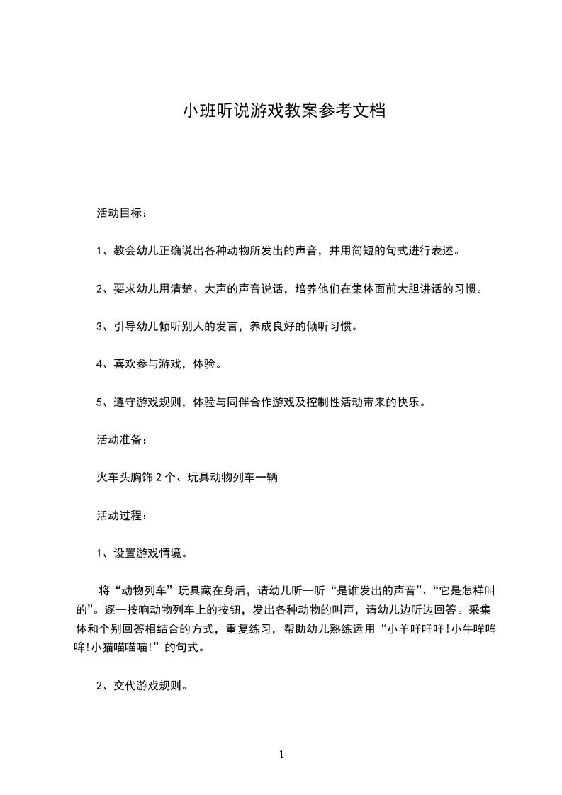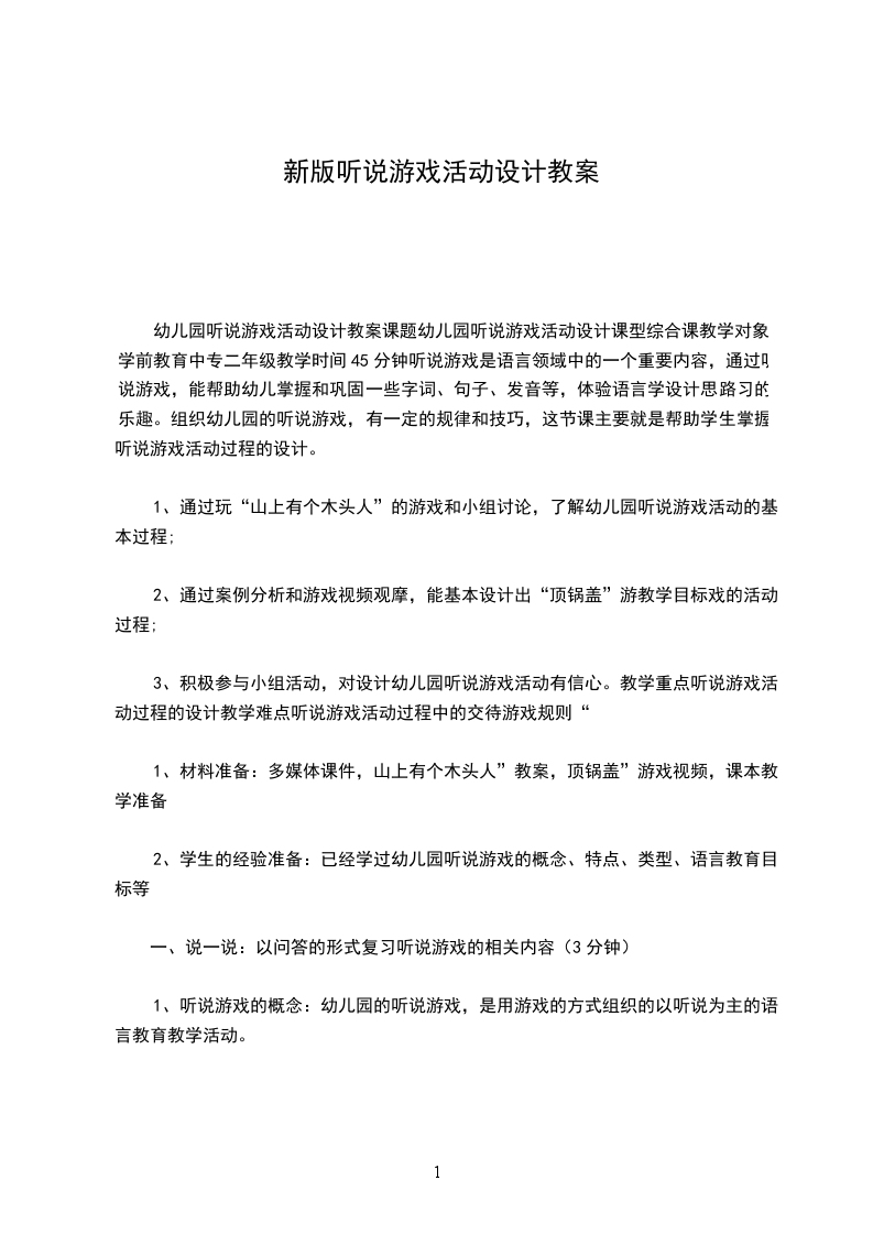 3、积极参与小组活动,对设计幼儿园听说游戏活动有信心。教学重点听说游戏活动过程的设计教学难点听说游戏活动过程中的交待游戏规则“