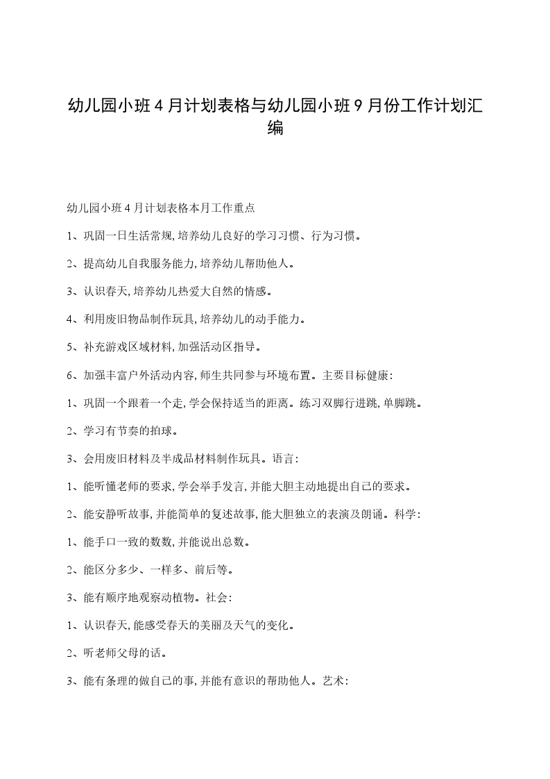 (3)鼓励家长积极参加亲子活动,参与助教,发挥家长的作用。以上是我本学期的个人工作计划,在今后工作中,我将努力工作,争取更大的进步。幼儿园小班9月份工作计划.