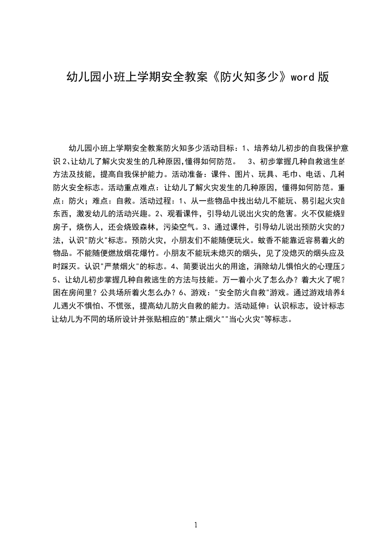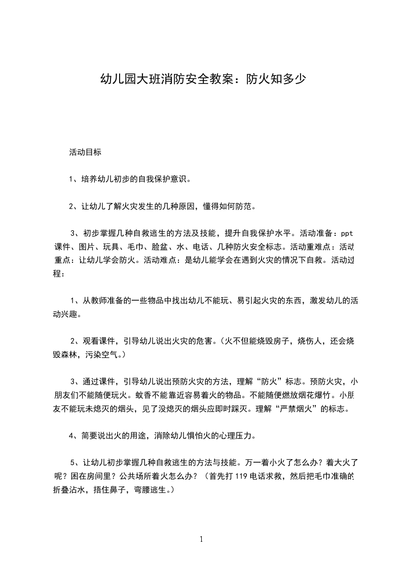 3、初步掌握几种自救逃生的方法及技能,提升自我保护水平。活动准备:ppt课件、图片、玩具、毛巾、脸盆、水、电话、几种防火安全标志。活动重难点:活动重点:让幼儿学会防火。活动难点:是幼儿能学会在遇到火灾的情况下自救。活动过程: