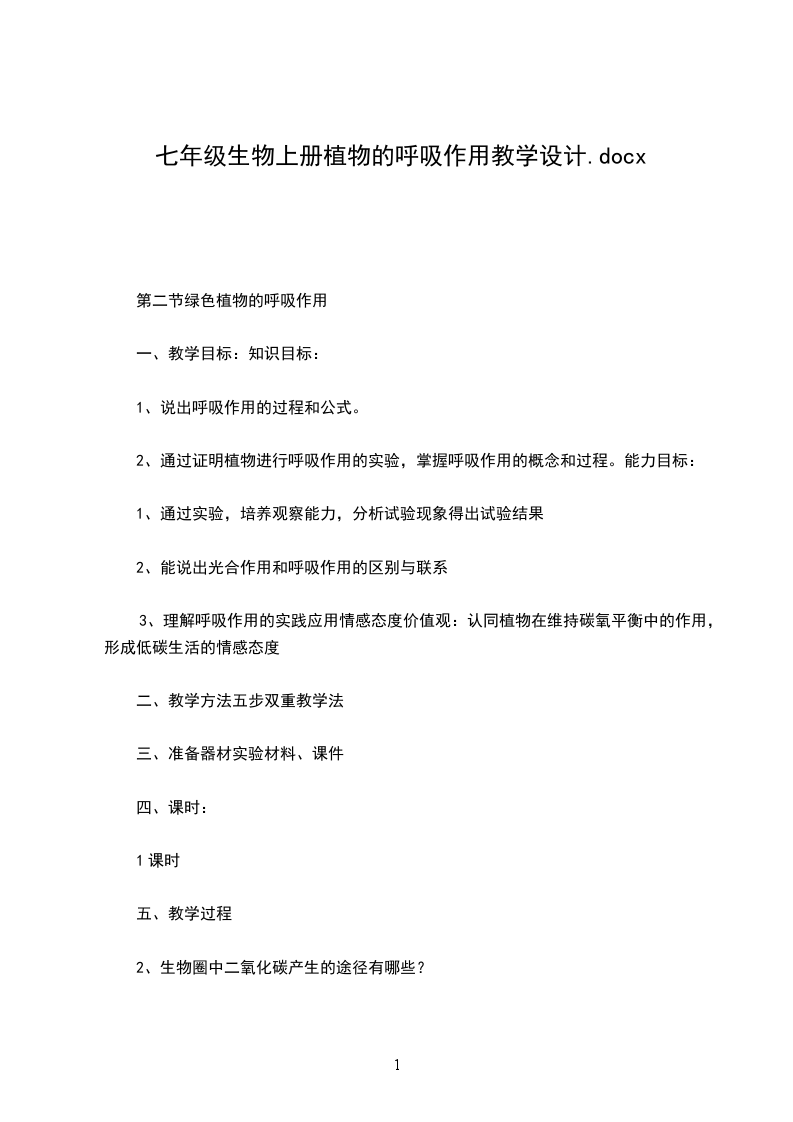 (2)初步掌握人体吸入和呼出气体成分测定的方法,初步学会测定肺活量的方法,并将计算出的实验数据绘成直方图。情感价值学生在了解呼吸系统结构和功能的基础上,懂得呼吸系统对与人体生命活动的重要性,懂得更加珍爱生命,培养讲究个人卫生和环境卫生的好习惯。通过测定肺活量,了解加强体育运动对于呼吸系统的好处。教学策略主要采用导学法,通过学生读图、观看视频、分析实验,联系生活实际,引导学生观察、思考、分析、交流表达,积极参与到学习中,达到自主学习。教学重点指导学生通过感受呼吸、模拟实验和观察,了解人体呼吸系统的各部分结构的功能。教学难点通过实验和分析,理解人体呼吸运动、气体交换的原理。教学准备制作T演示稿教学过程流程教师活动学生活动设计意图创设情境创设情境