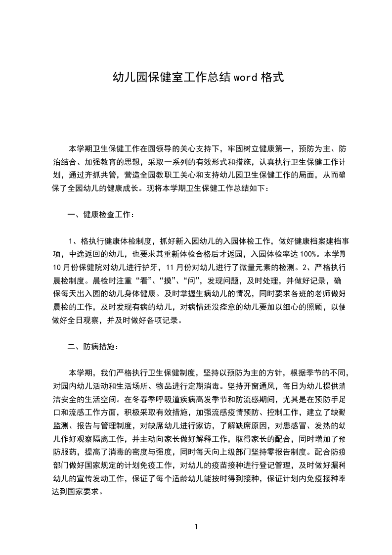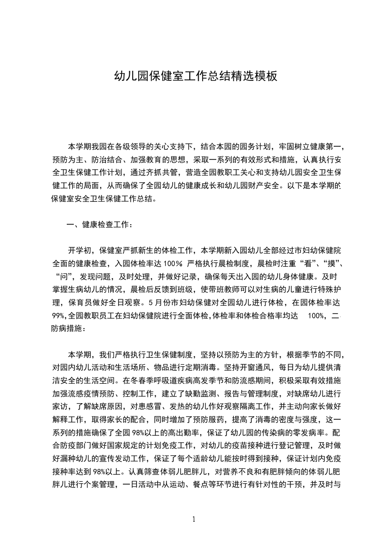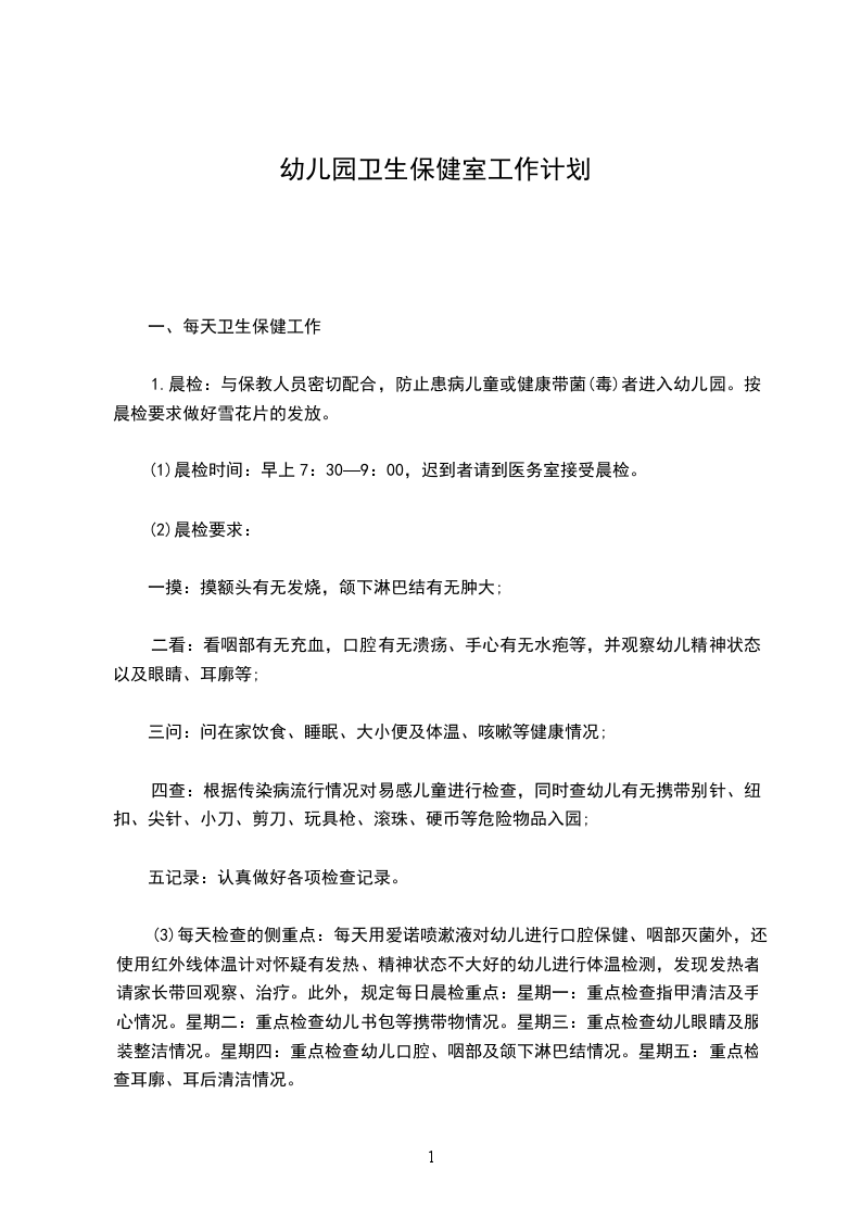 一、指导思想坚持以“预防为主”的工作方针,牢固树立“健康第一”的观念,认真贯彻落实幼儿园卫生工作条例、传染病防治法、食品卫生法、公共场所卫生管理条例等相关法律法规,规范幼儿园卫生、健康教育工作,加强幼儿常见病和传染病防治力度,努力提高幼儿健康水平。