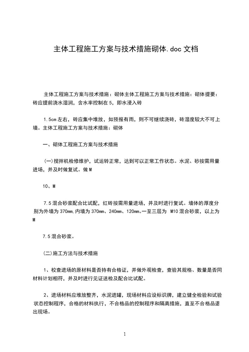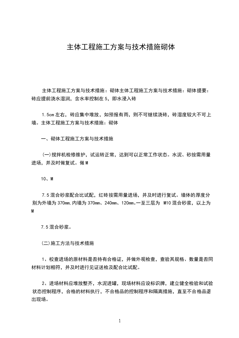 2、墙体a墙体拉结筋、构造柱钢筋及各种预埋件、水电管线等要注意保护,不得任意拆改或损坏.b尚未进行楼板施工的墙体和柱,当可能遇到大风时,应采取临时支撑举措,以保证墙体稳定性.c对窗间墙、拐角处墙体等较窄的墙体在支设模板及混凝土浇筑时必须进行加固,以防活动墙体.d雨期施工期间,应预防基槽进水和雨水冲刷砂浆,砂浆的稠度应适当减小.每日砌筑高度不宜大于1.2m,收工时应覆盖砌体外表.