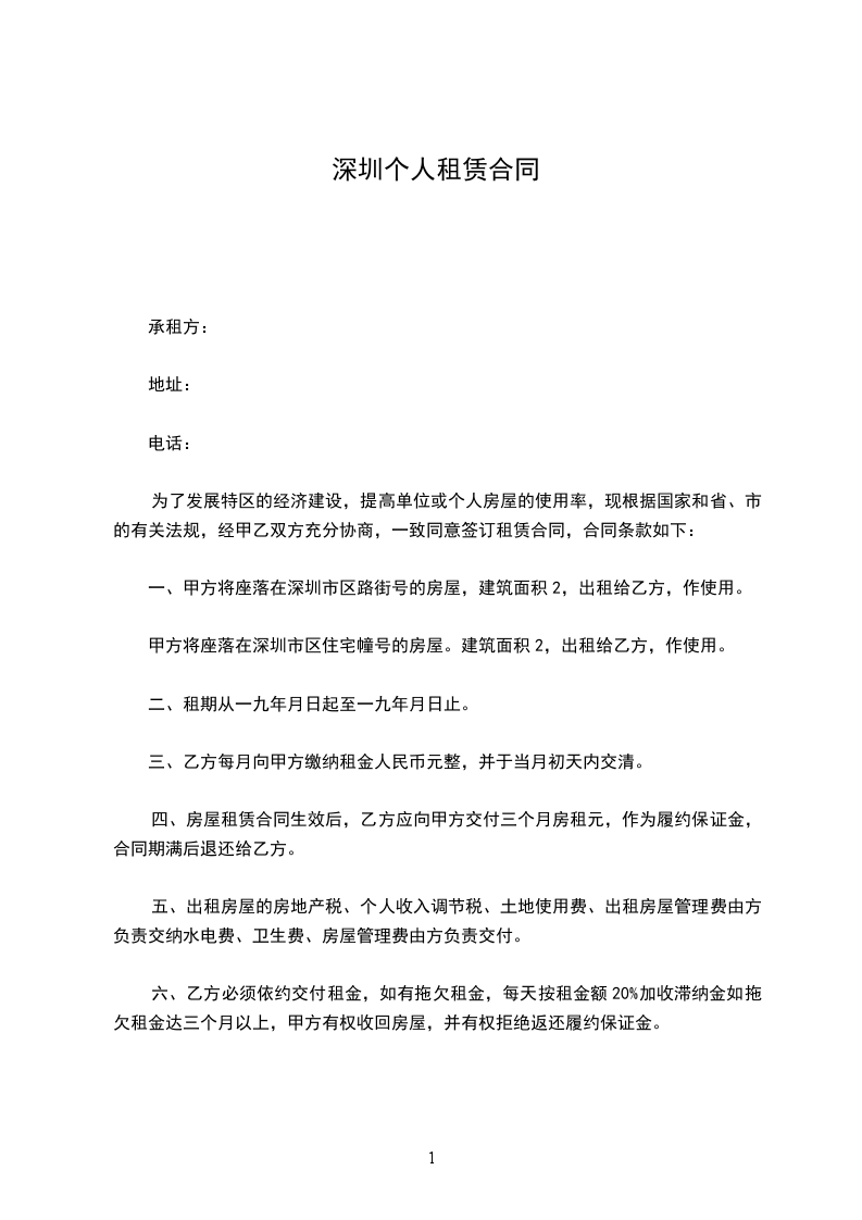 承租方:(以下简称乙方)____________身份证号码:___________________________