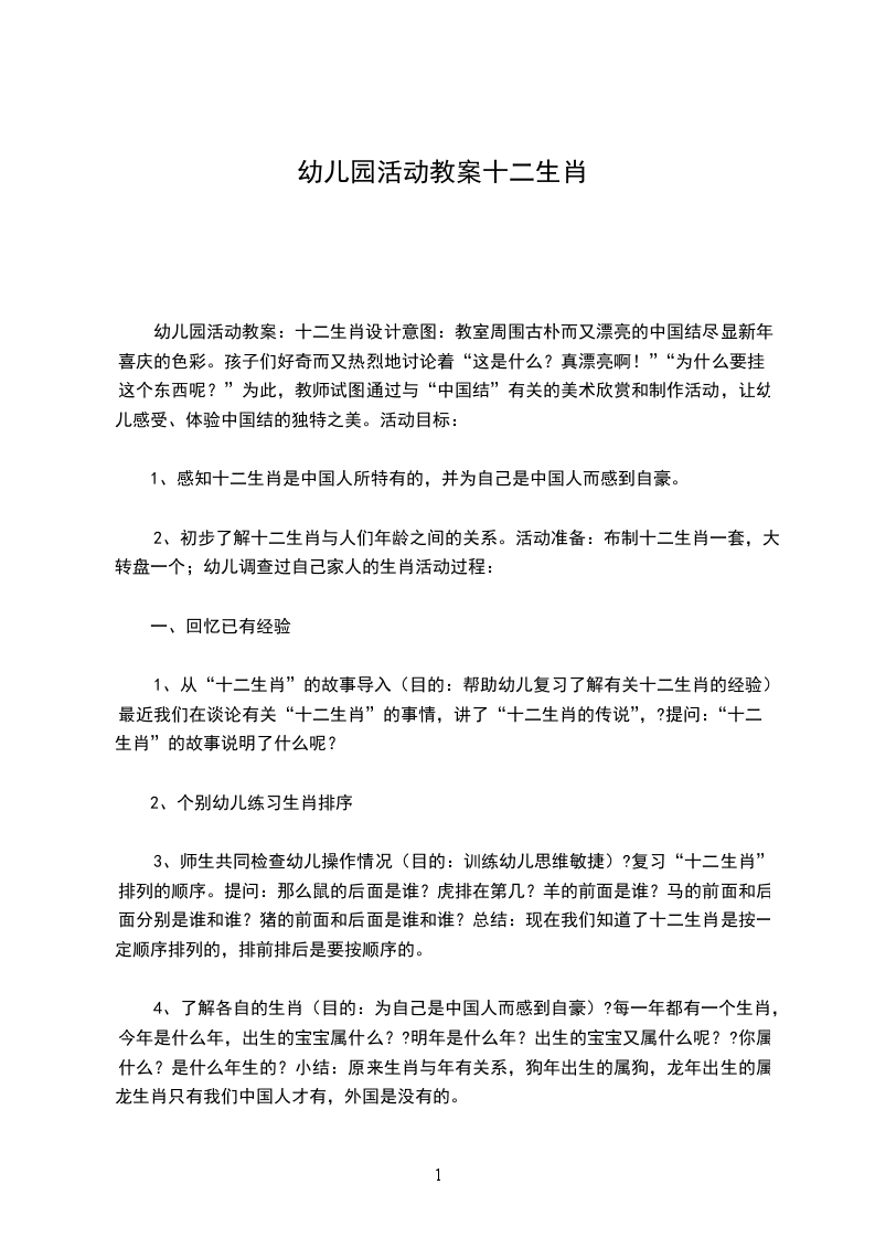 1、认识十二生肖并知道其排列顺序和自己的属相。