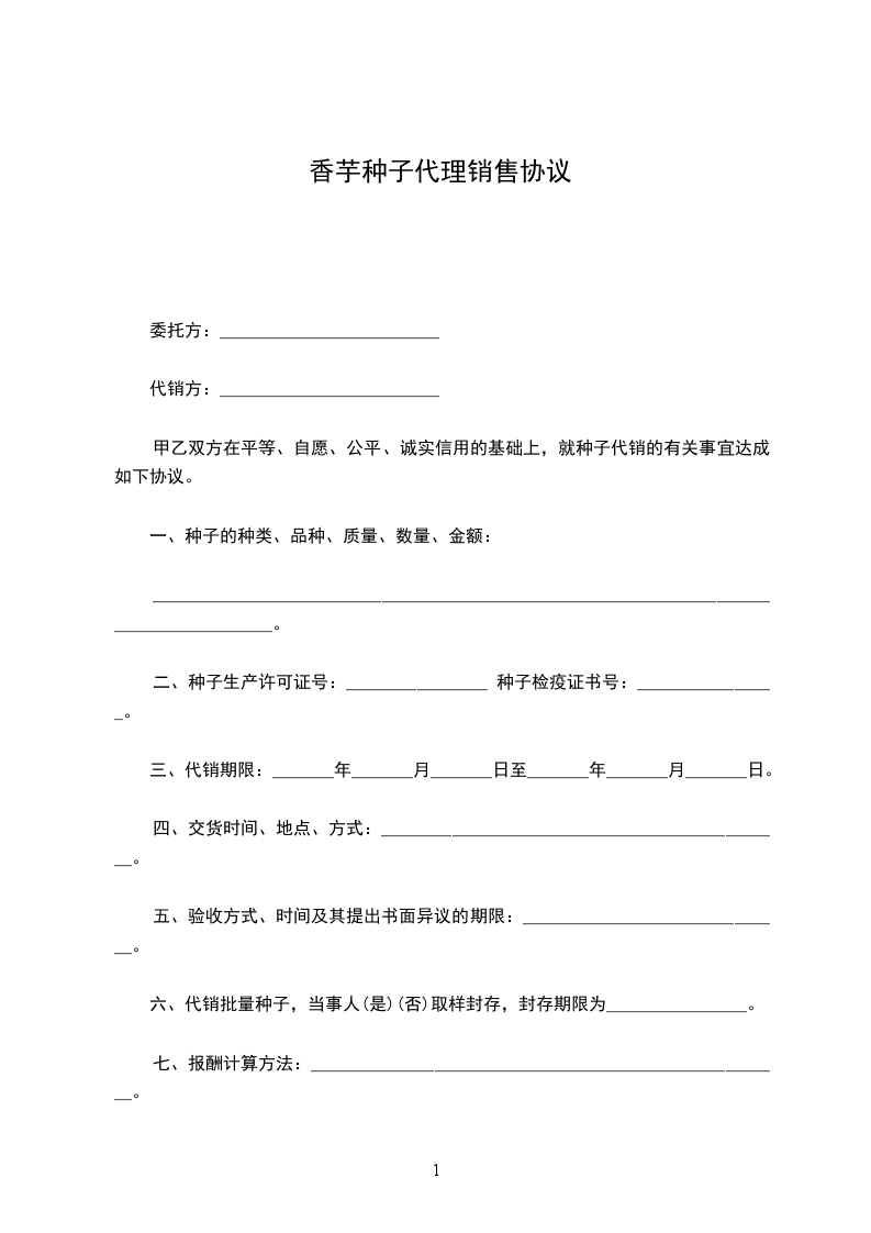 甲乙双方在平等、自愿、公平、诚实信用的基础上,就种子代销的有关事宜达成如下协议。