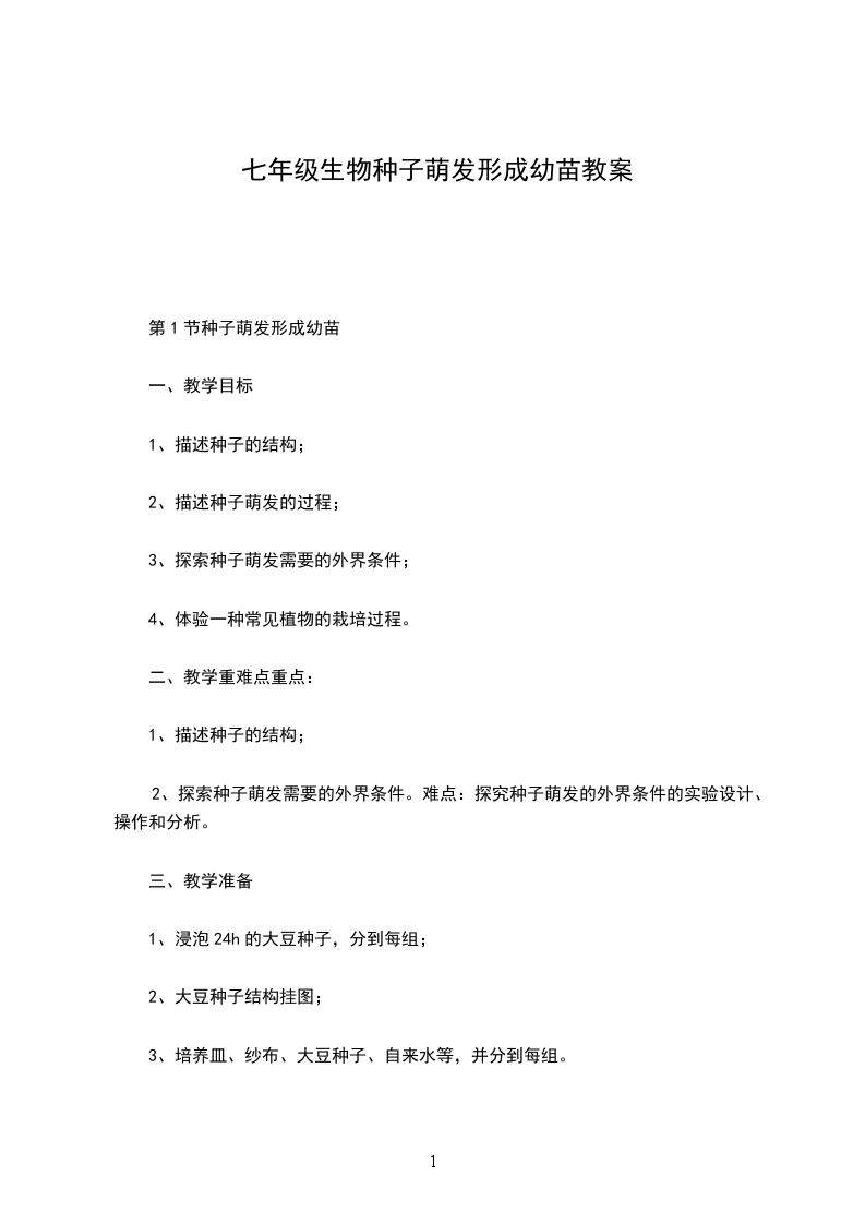 2、知道植物种子萌发的过程,并能指出种子结构与幼苗各结构的对应关系。能力目标通过观察实验和分析实验现象,分析种子萌发的原因,继续培养观察能力和分析问题、解决问题的探究能力。情感目标
