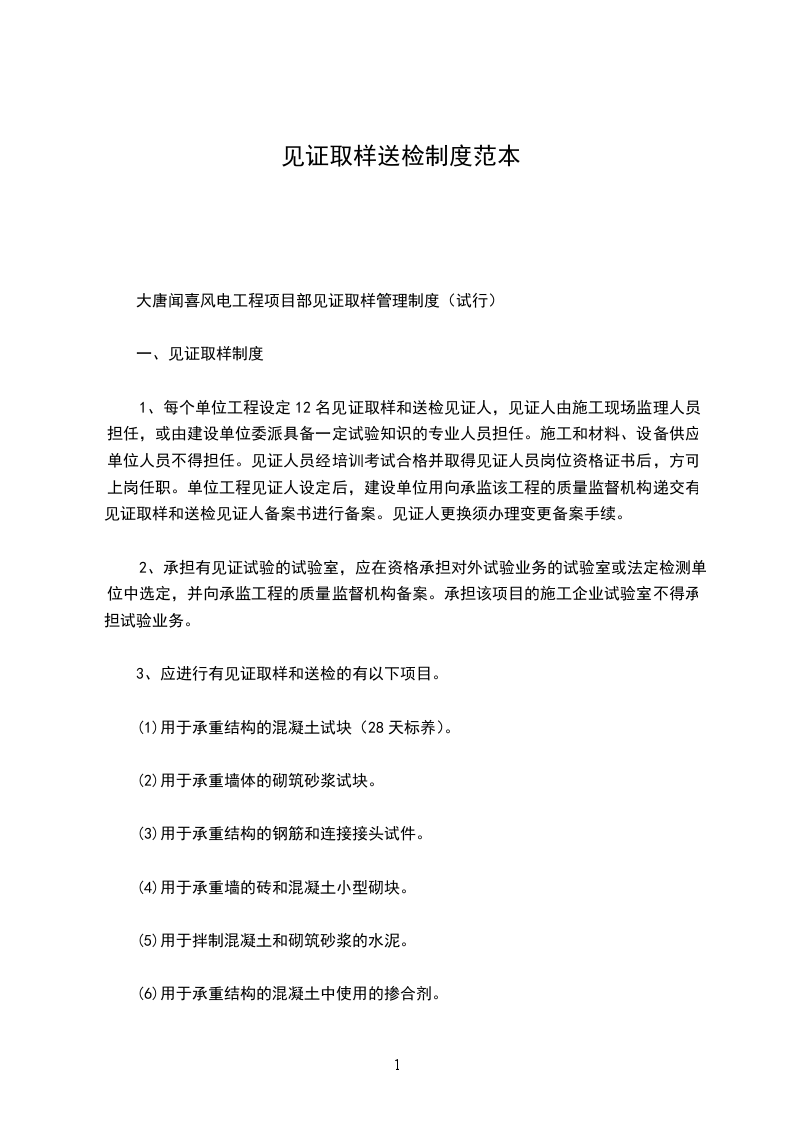 大唐闻喜风电工程项目部见证取样管理制度(试行)