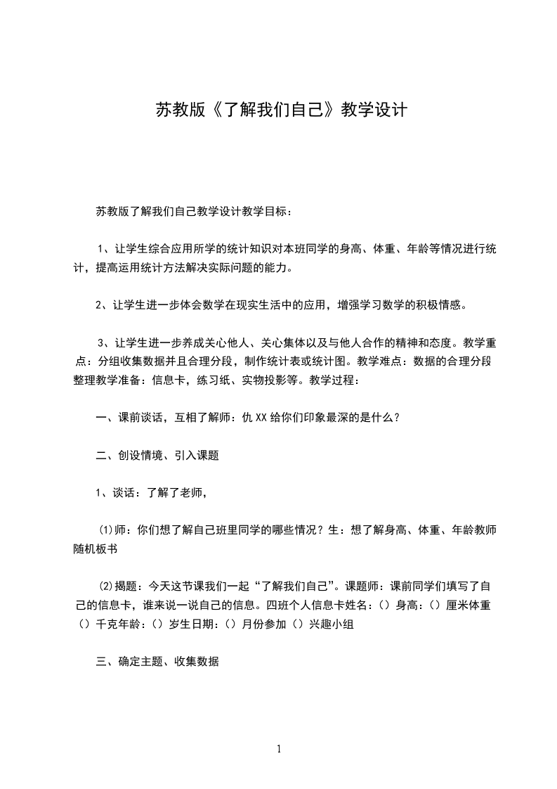 苏教版了解我们自己教学设计教学目标: