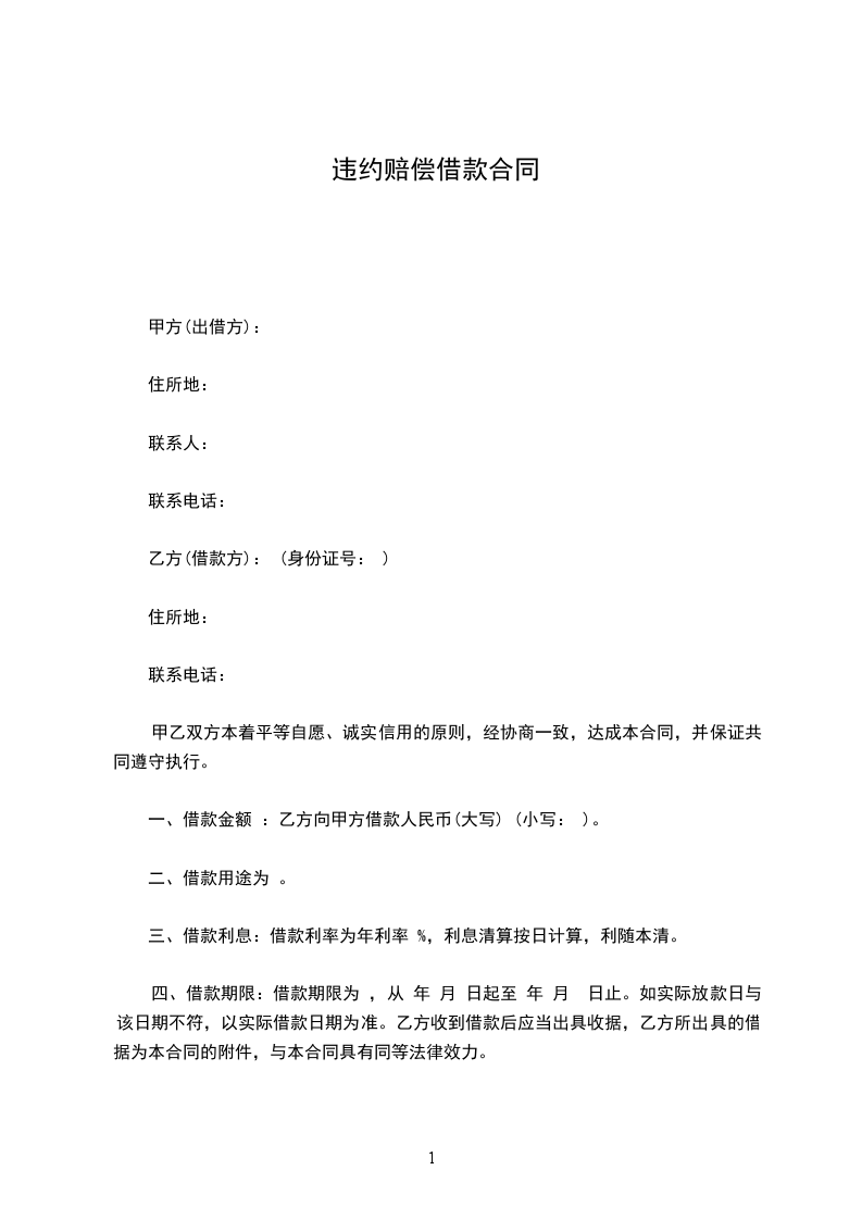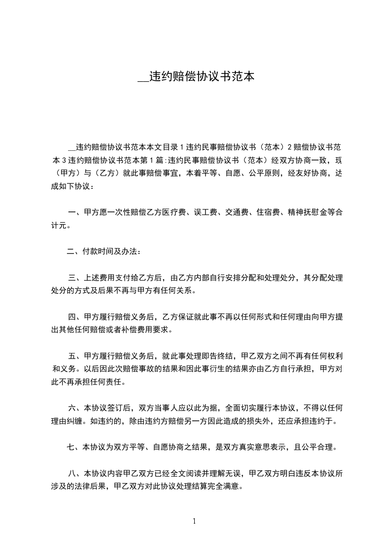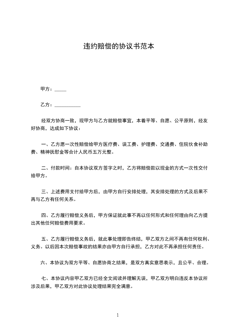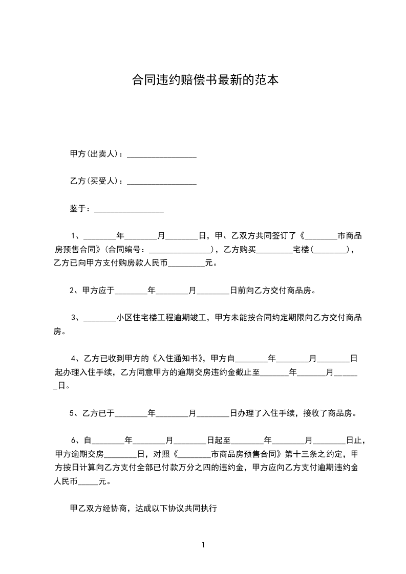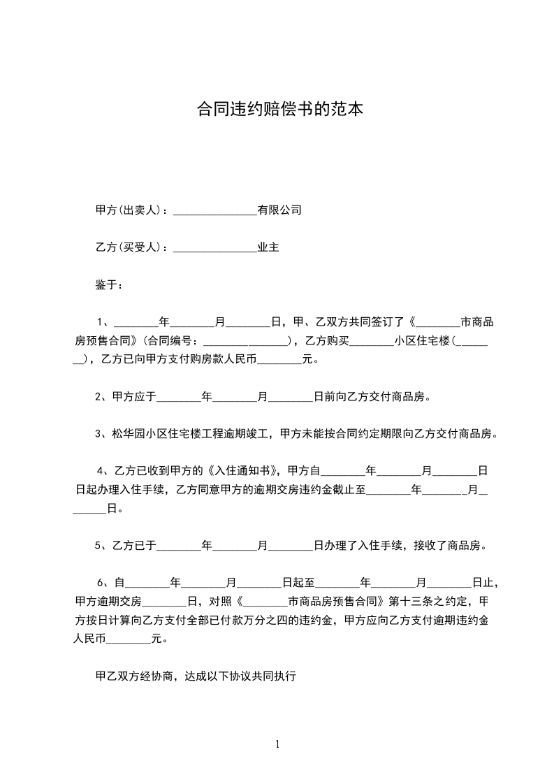 合同违约赔偿书的范本