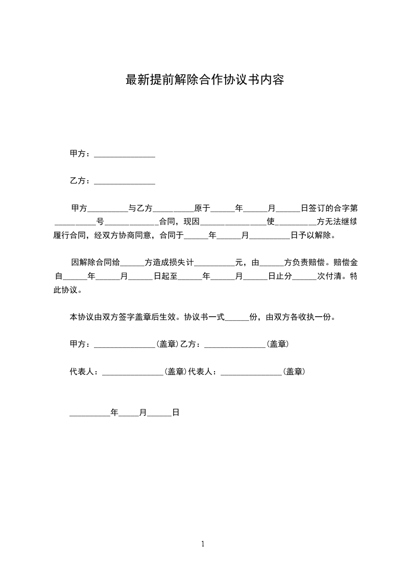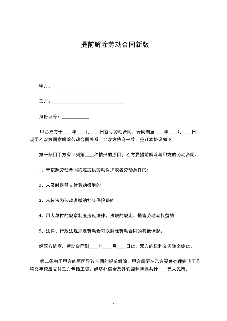 甲乙双方经友好协商,就乙方要求提前解除劳动合同等事宜达成如下协议,双方共同遵守: