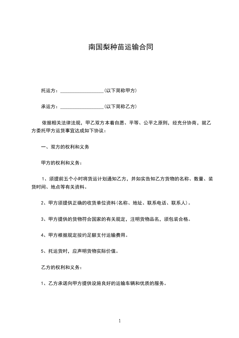 1、供方仓库交货,需方必须在供方通知提货后期满之日种子的风险转移至需方,并承担因此造成的全部损失。逾期提货,需方还应承担逾期的仓储费用。运费由需方自担。
