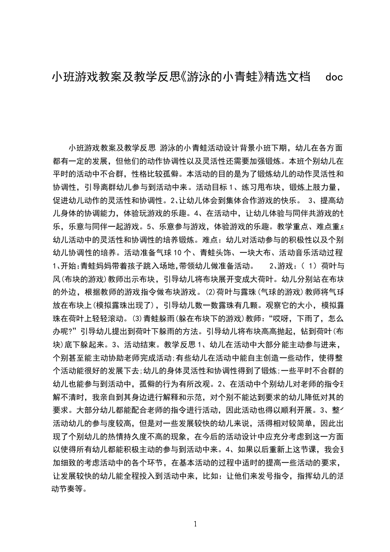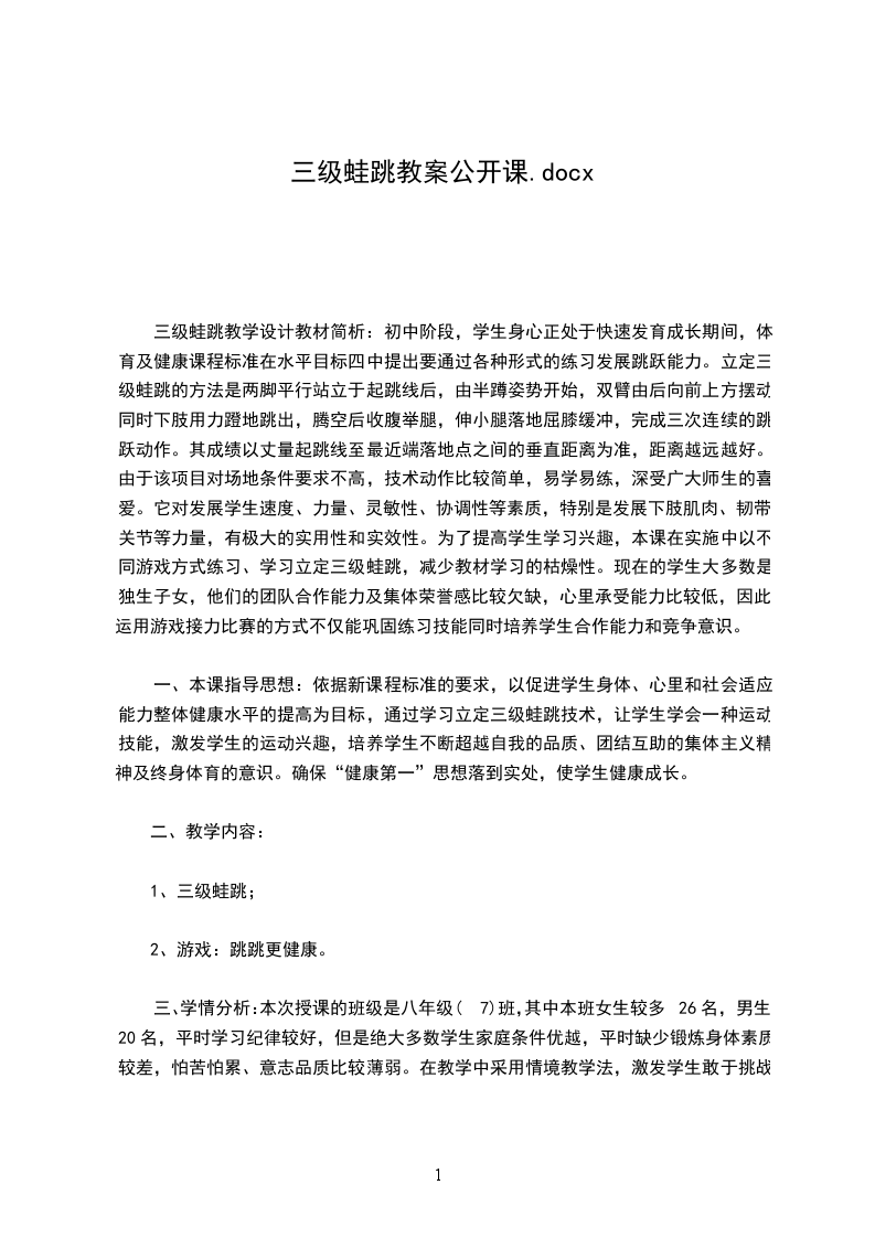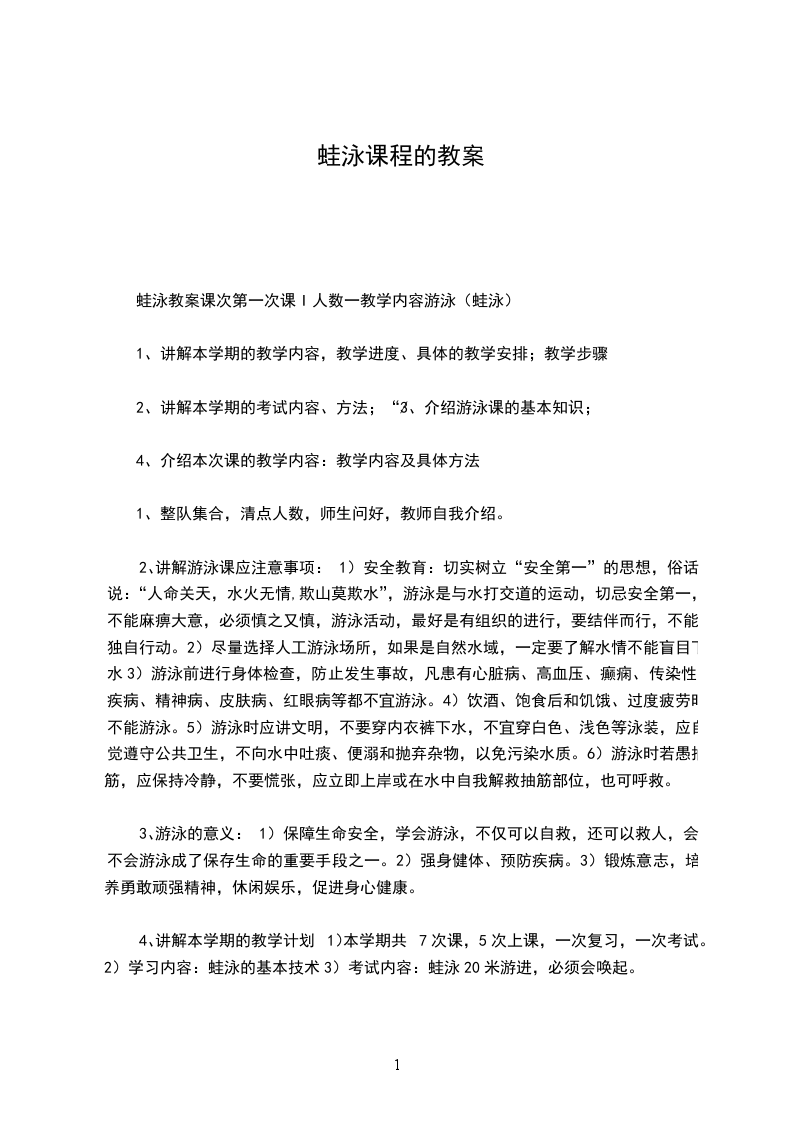 蛙泳教案课次第一次课I人数一教学内容游泳(蛙泳)