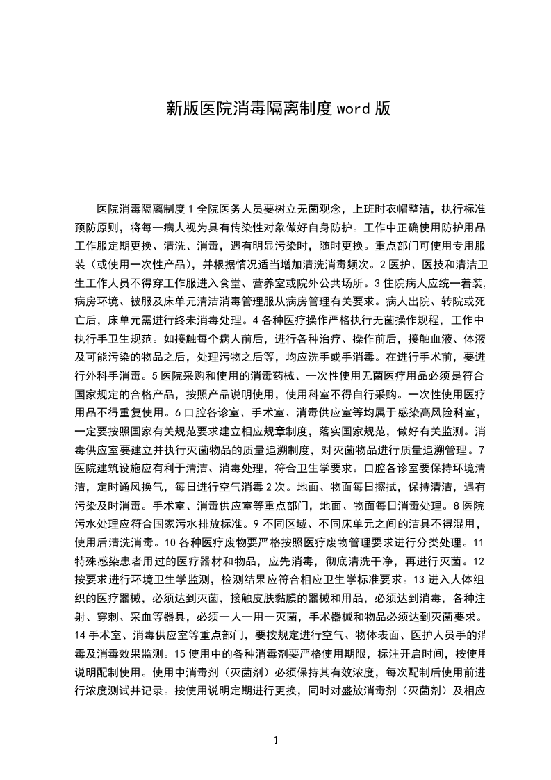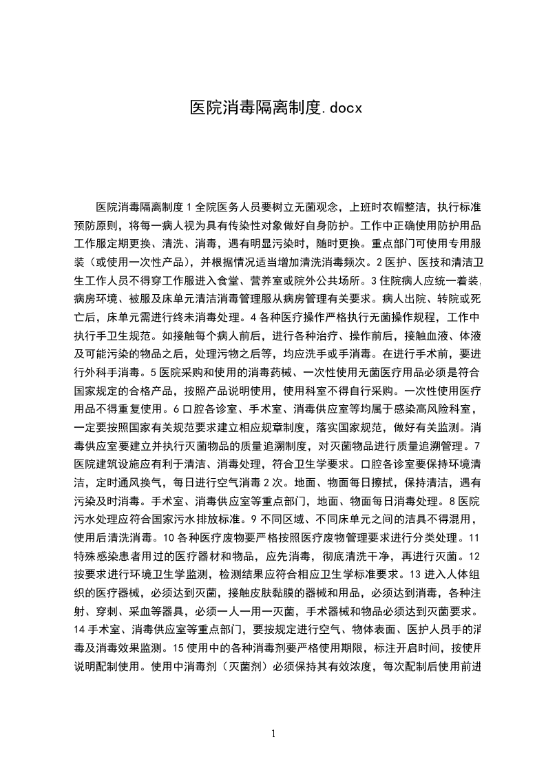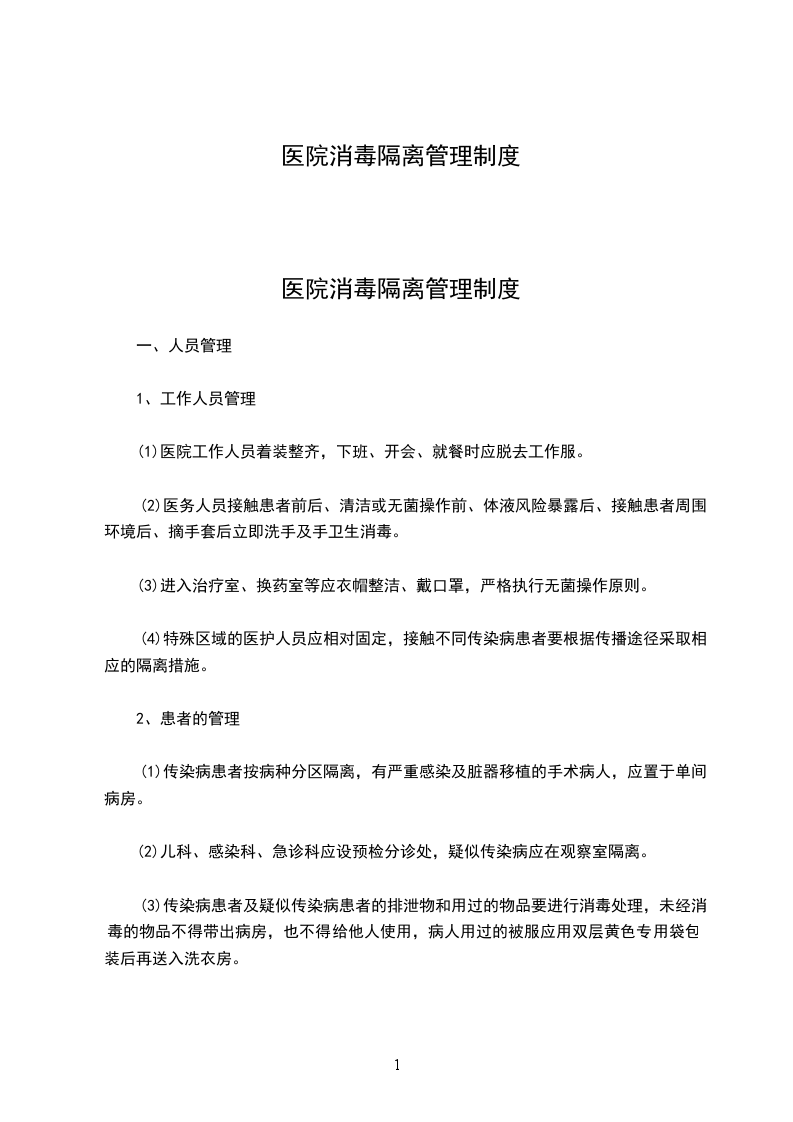 医院消毒隔离管理制度