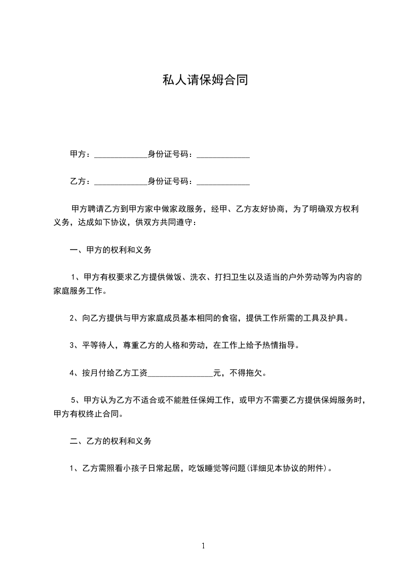 1、乙方需照看小孩子日常起居,吃饭睡觉等问题(详细见本协议的附件)。