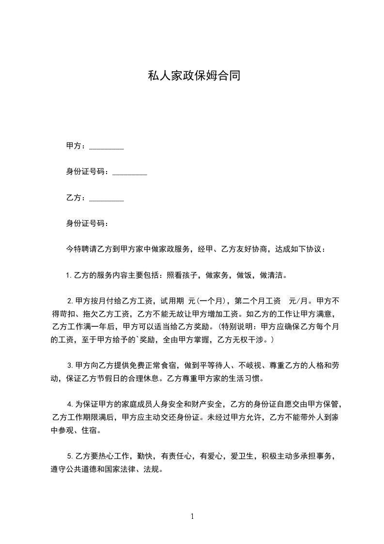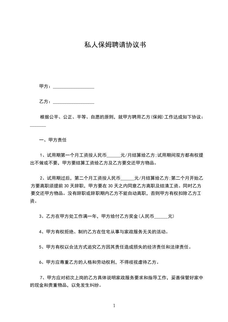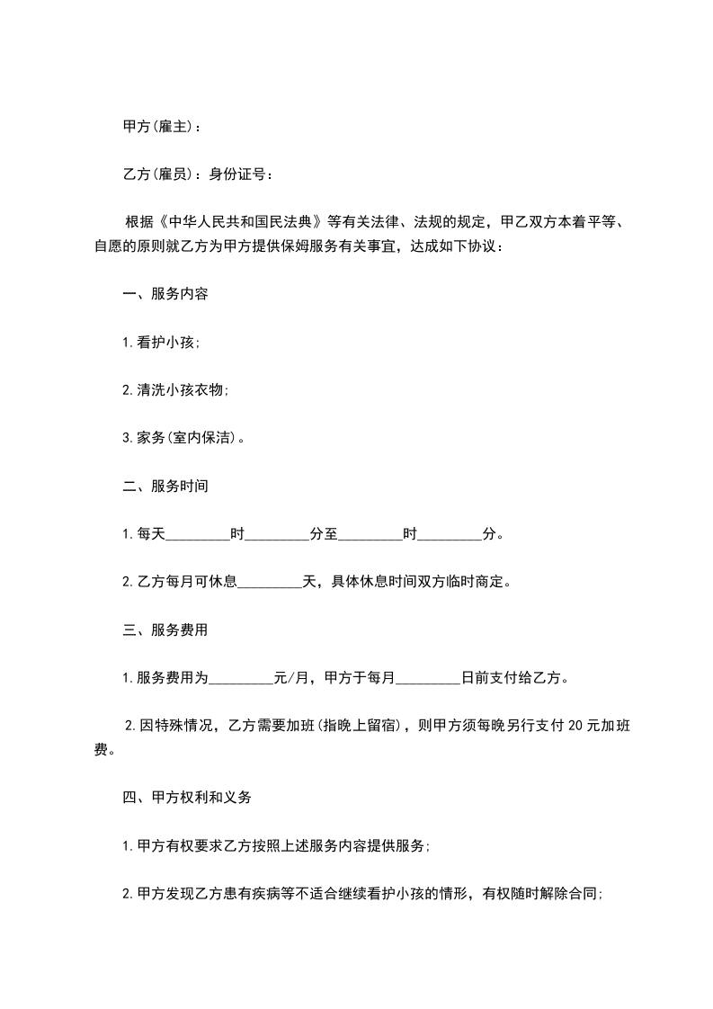 2、乙方要全心全意负责好小孩的安全,不得虐待小孩子,不得恐吓小孩,对孩子要尽可能有耐心。乙方不得与其他人员(如乙方熟人、小区其他保姆、小区保安等)随意谈论甲方的家庭情况。