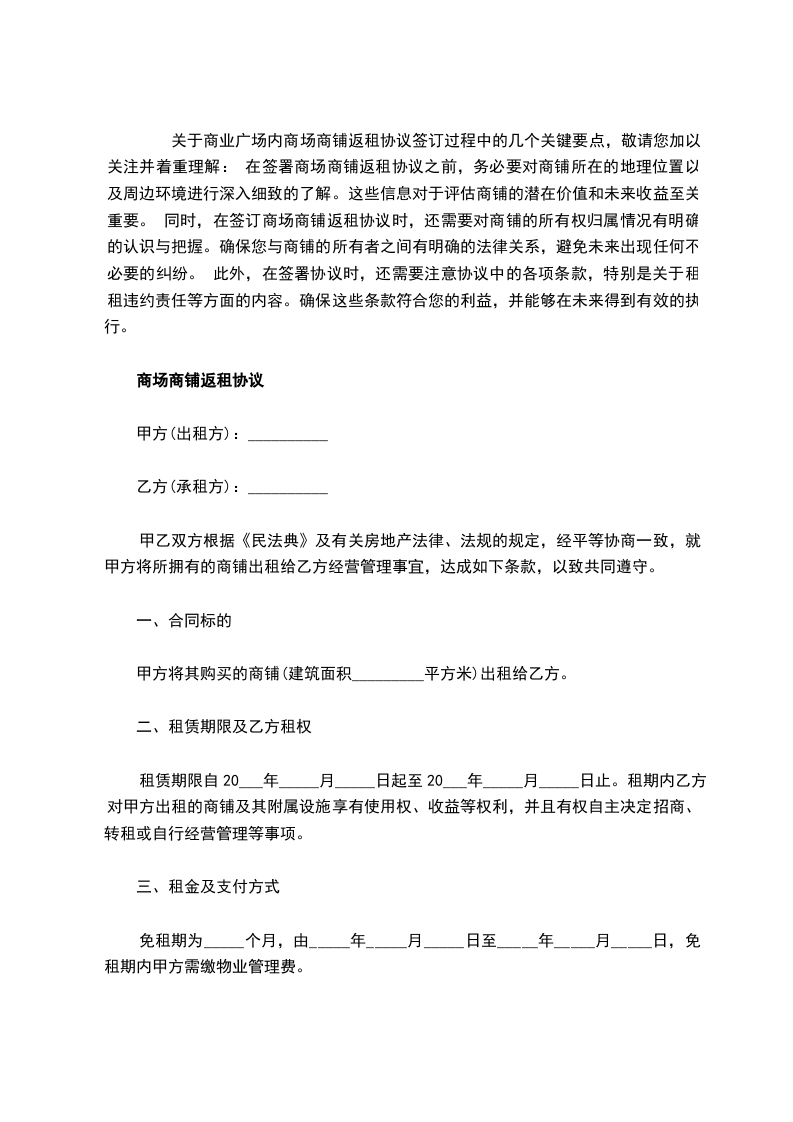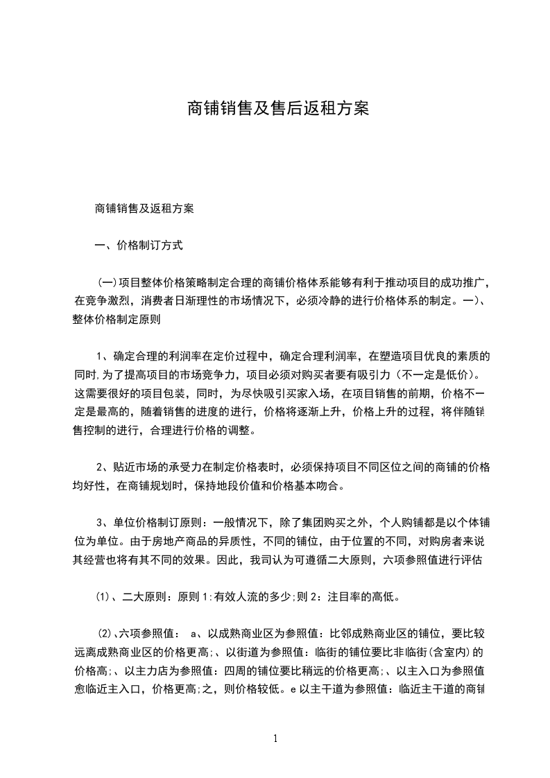 1、在不同的部分区域实行返租返租的铺位,以项目的