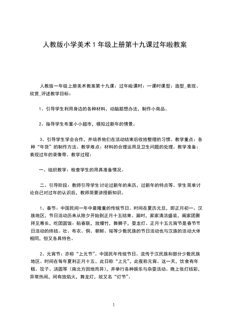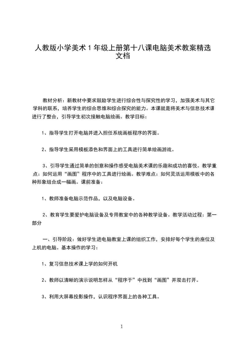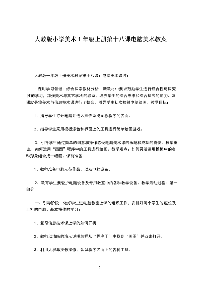 人教版一年级上册美术教案第十八课:电脑美术课时: