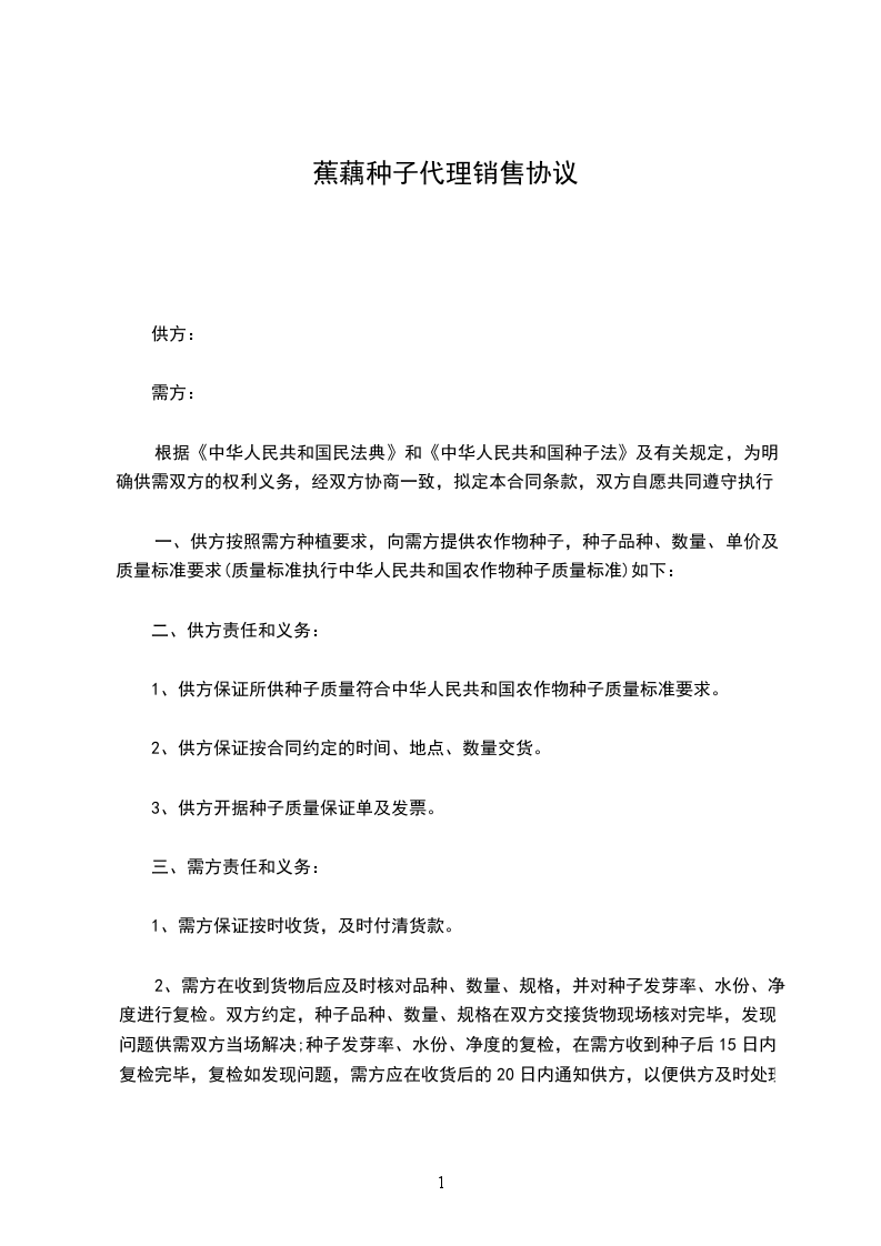根据《中华人民共和国民法典》、《中华人民共和国种子法》及有关规定,为明确双方的权利义务,经双方协商一致,签定本合同。