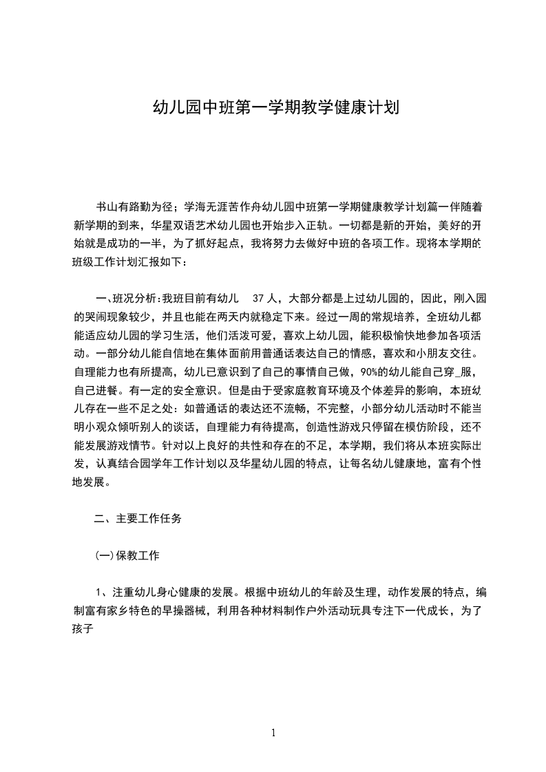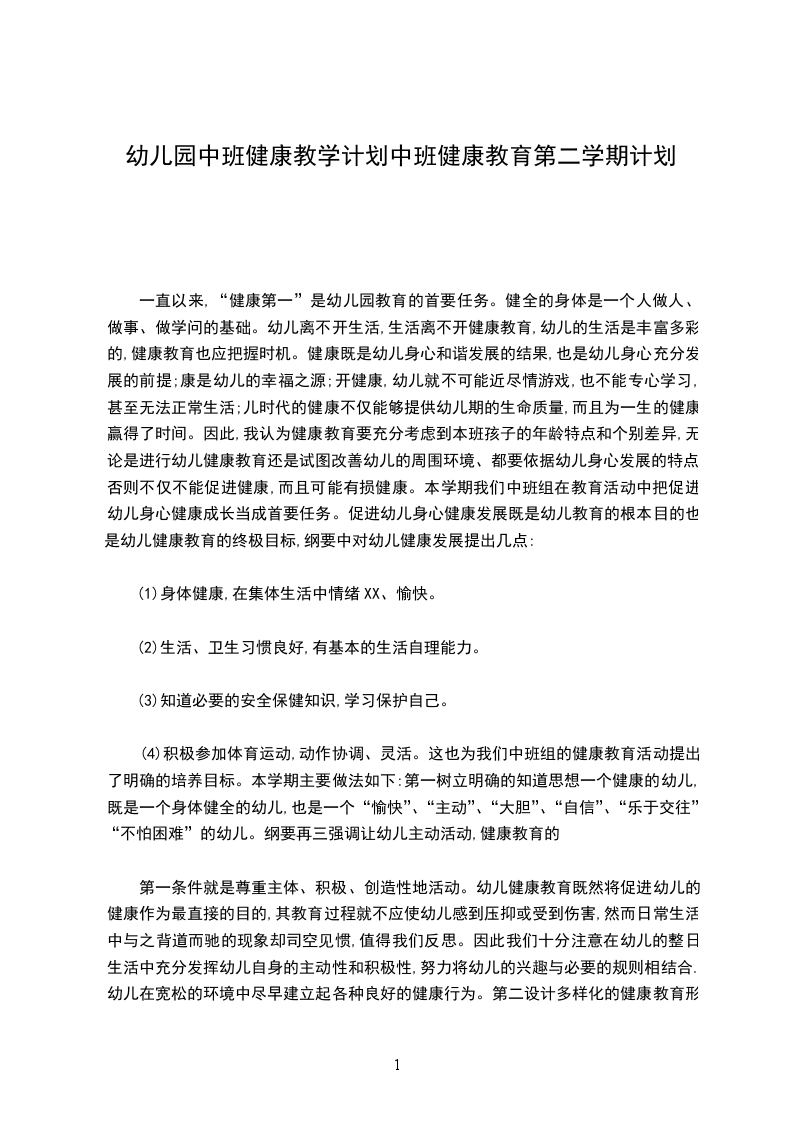 20__年第二学期中班健康教学计划中一班本学期我们中班组在教育活动中把促进幼儿身心健康成长当成首要任务。