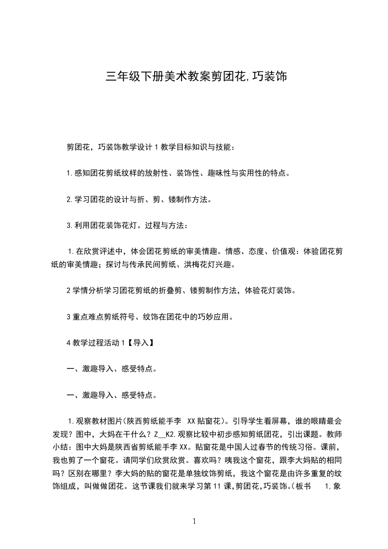 剪团花,巧装饰教学设计1教学目标知识与技能:
