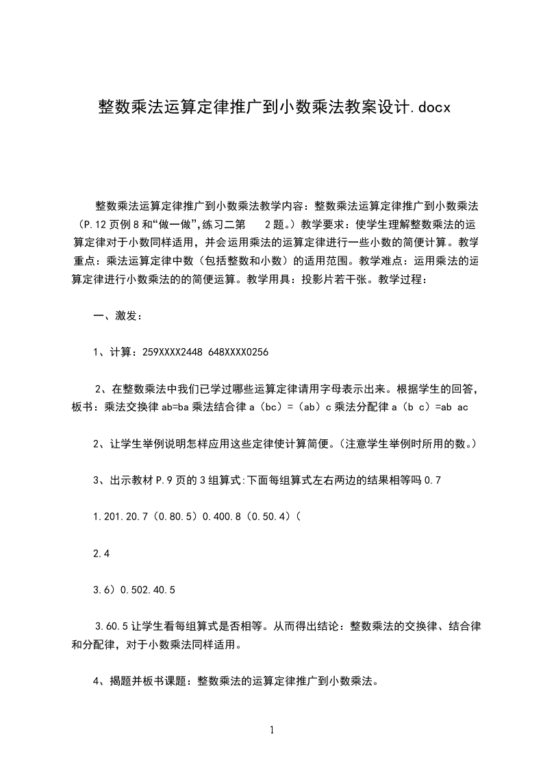 1、本部分内容实在学生掌握了整数四则运算,小数的意义和性质以及小数加减法的基础上进行教学的。由于小数与整数有密切的联系,所以这部分内容在编排上和讲解上都注意联系整数运算,一边是学生把整数运算的知识迁移到小数运算中。