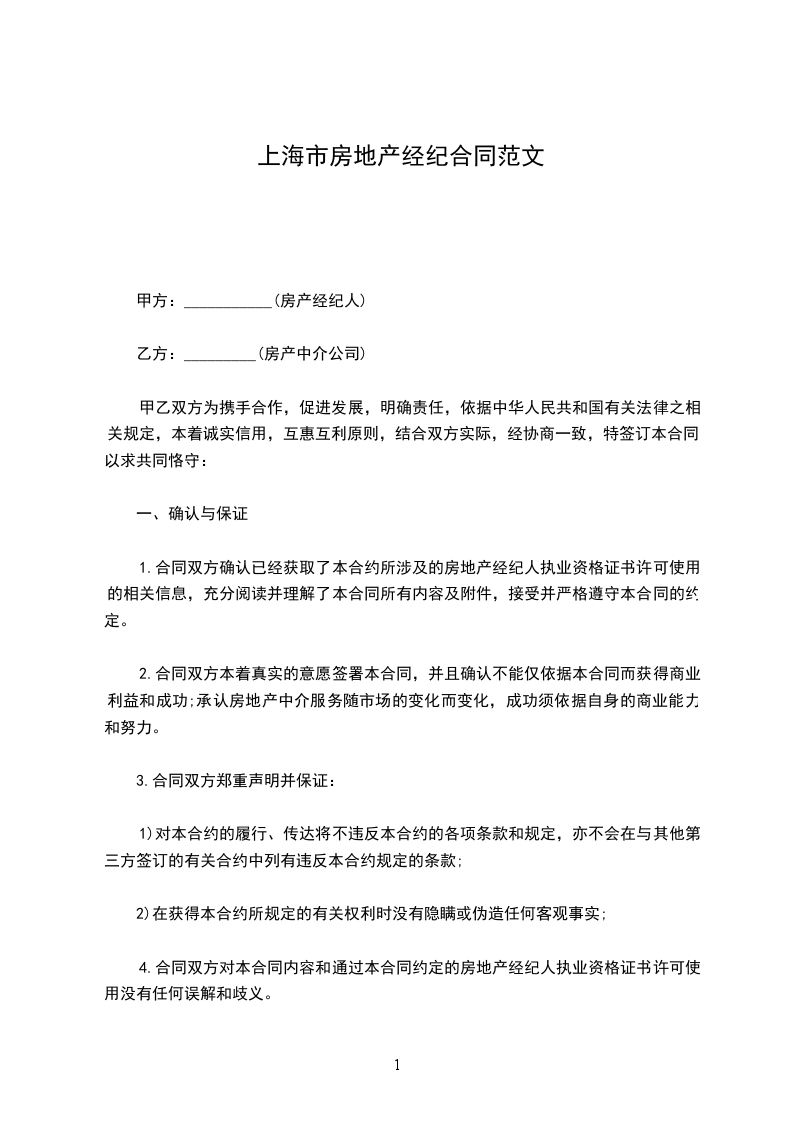 上海市房地产经纪合同(合同编号:)本合同双方当事人委托人(甲方)经纪人(乙方)依据国家有关法律,法规和本市有关规定,甲、乙双方在自愿、平等和协商一致的基础上,就甲方授权委托乙方,乙方接受甲方委托从事地产经纪事项达成一致,订立本合同。