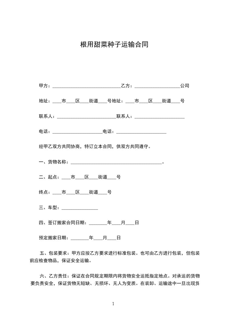 根用甜菜种子代销协议