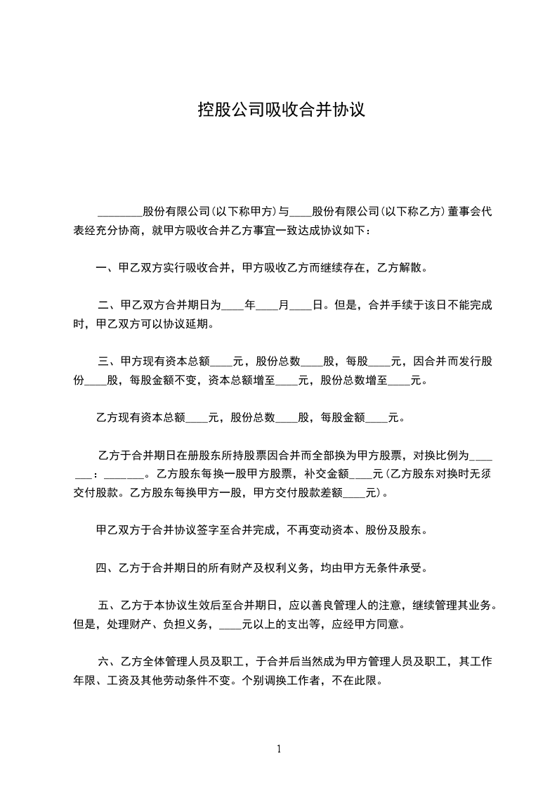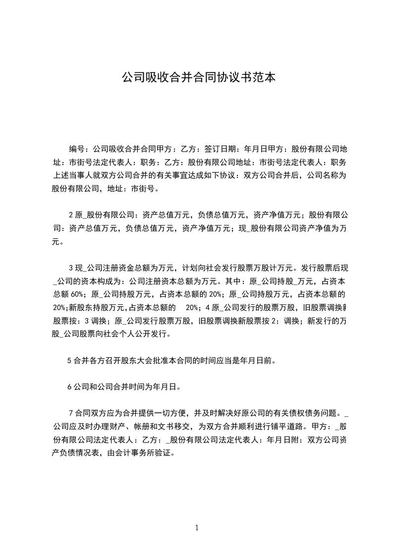 5.合并各方召开股东大会批准本合同的时间应当是_____年_____月_____日前。