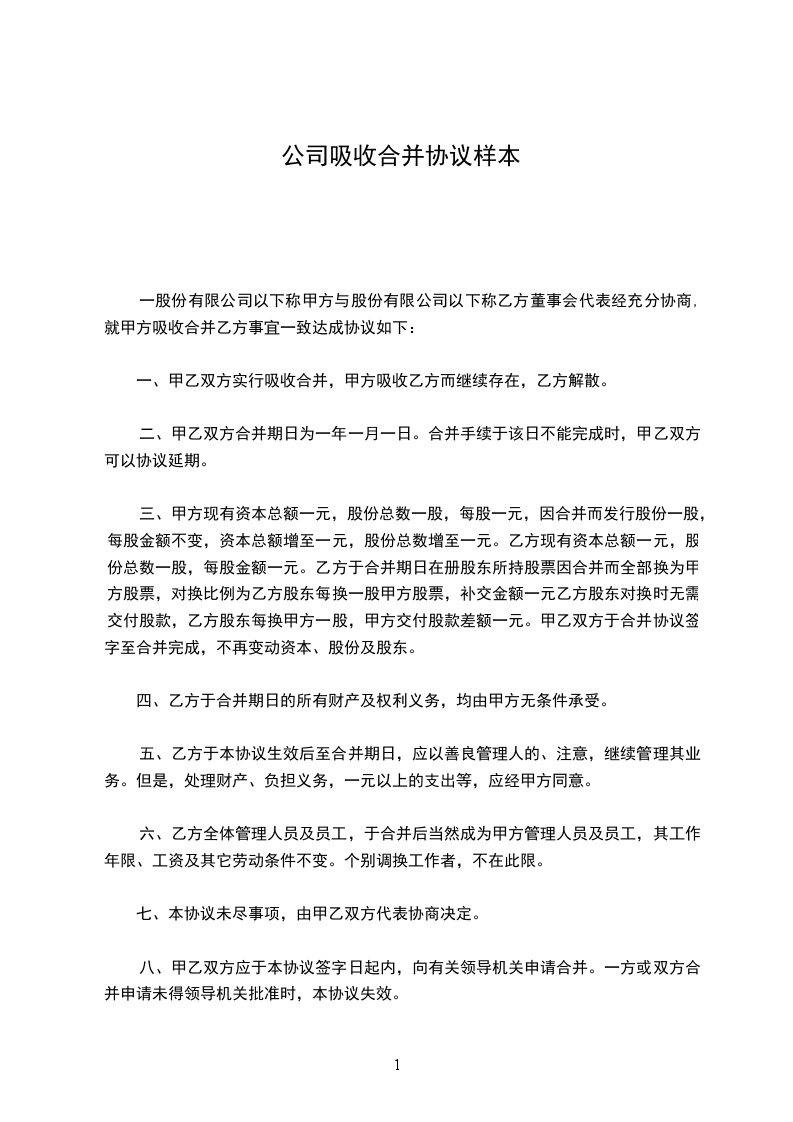 7.合同双方应为合并提供一切方便,并及时解决好原公司的有关债权债务问题。__公司应及时办理财产、帐册和文书移交,为双方合并顺利进行铺平道路。