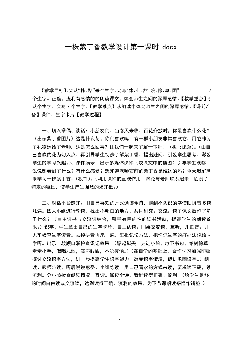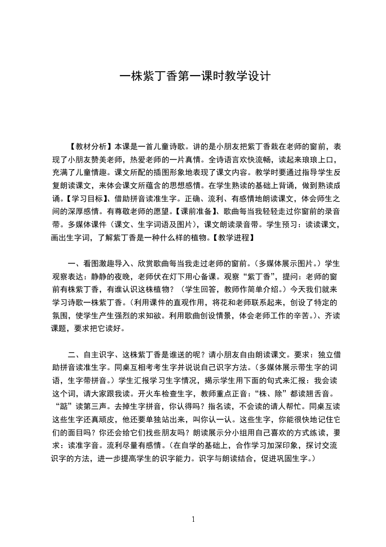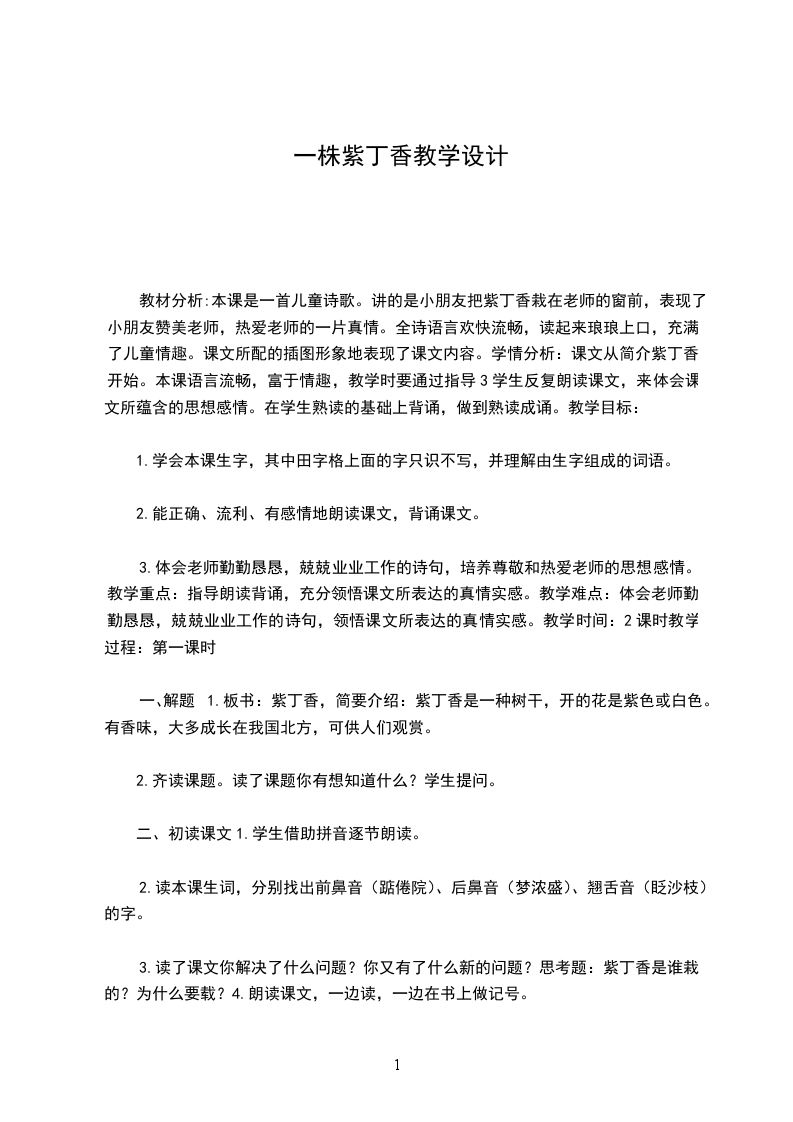 一、切入举偶、谈话:小朋友们,当春天来临,百花齐放时,你最喜欢什么花?(出示紫丁香图片)这是什么花,你们喜欢吗?有一群小朋友非常喜欢它,用它作为了礼物送给了老师,这是怎么回事?让我们一起来了解一下吧!(板书课题)。(由自己喜欢的花为切入点,再引导学生初步了解紫丁香,提出疑问,引发学生思考,激发学生的学习兴趣。)、课件演示:出示多媒体课件(或课文中的插图)引导学生观察,说说都看到了什么?有什么感受?想知道老师窗前的紫丁香是谁送的吗?今天我们就来学习一株紫丁香。(板书)。(利用课件的直观作用,将花与老师联系起来,创设了特定的氛围,使学生产生强烈的求知欲。)