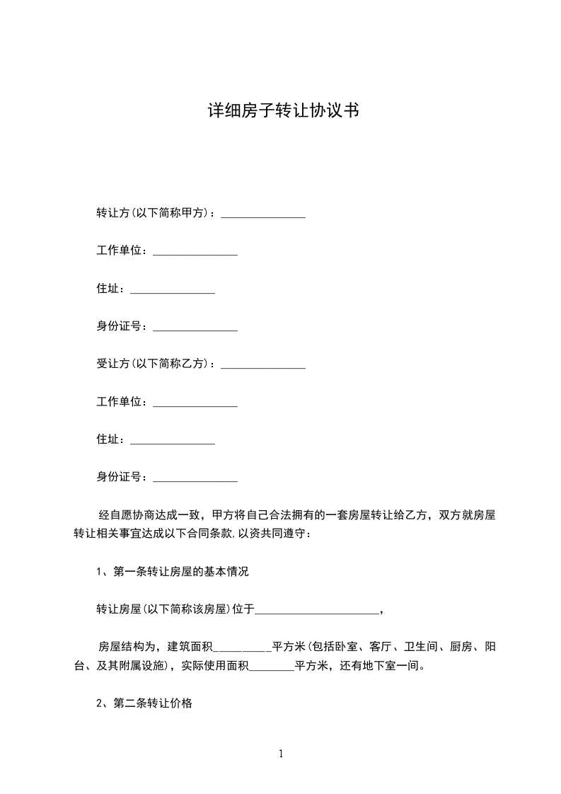 1、第一条转让房屋的基本情况