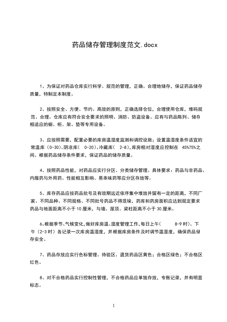 1、为保证对药品仓库实行科学、规范的管理,正确、合理地储存,保证药品储存质量,特制定本制度。