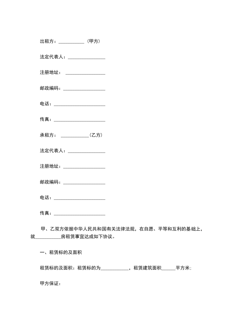 甲、乙双方经平等协商,就租赁________广场房屋事宜达成如下协议,供双方共同遵守: