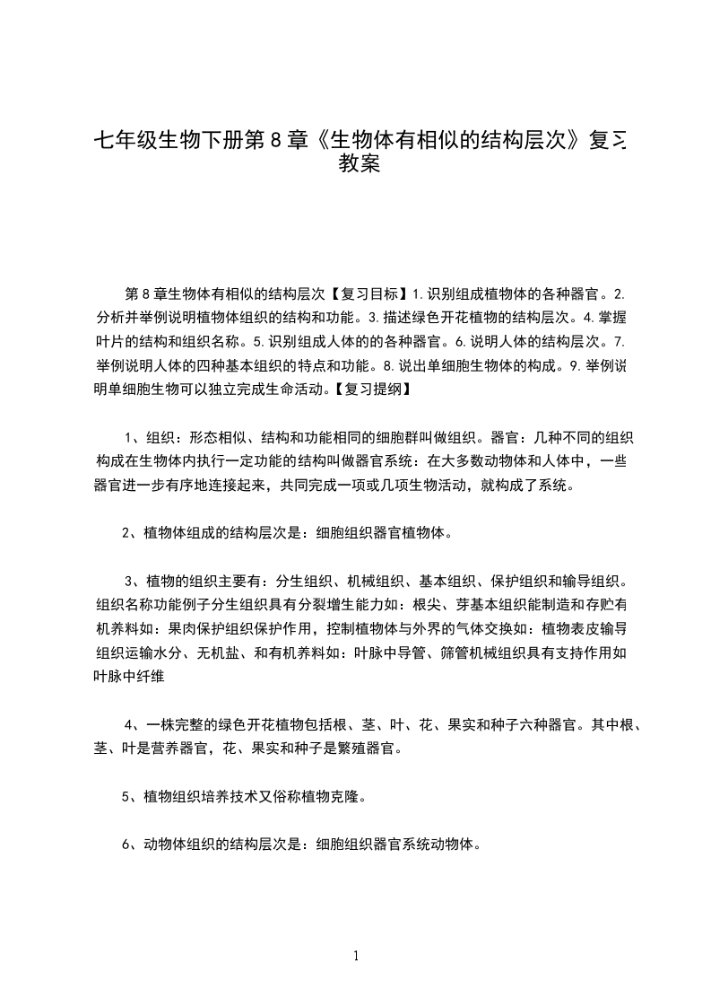 动物体的结构层次教学内容第二单元