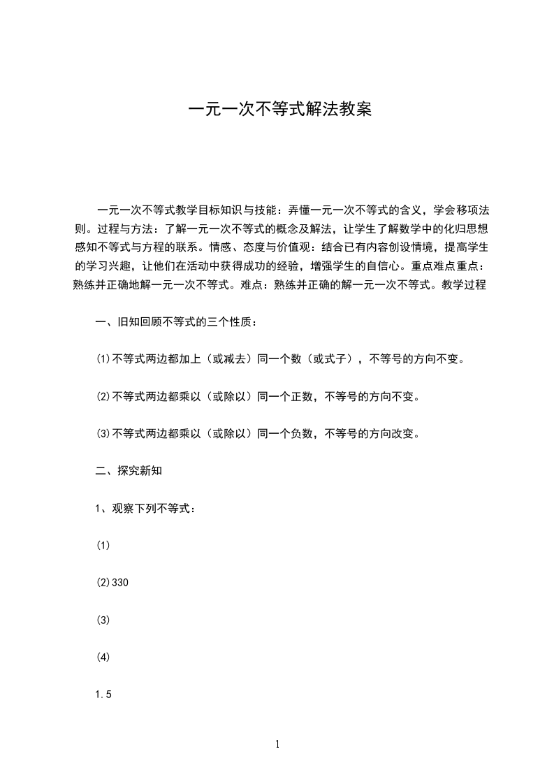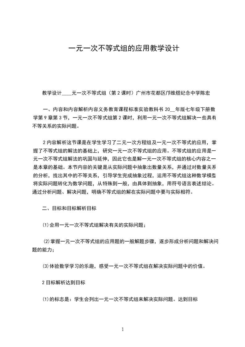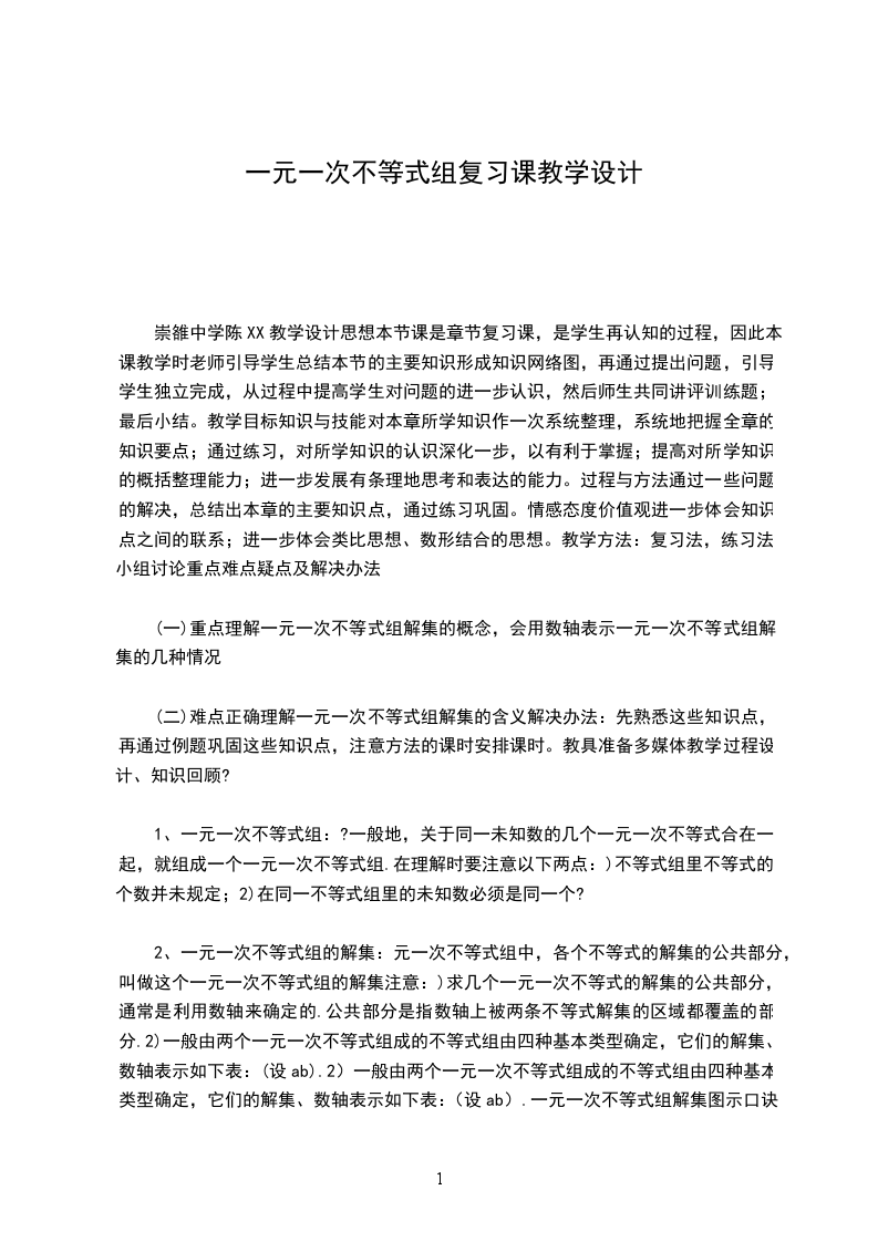 二、学生情况分析本节学习之前,学生学习了一元一次不等式概念,掌握了解一元一次不等式的基本技能。并能利用一元一次不等式解决一些简单的现实问题,感受到了不等式在生活中的广泛应用;同时同学们都非常清楚在本章节的学习当中主要采用类比的学习方法,并且知道数形结合的思想在解决一些实际问题的优越性,这些知识对于本课的学习是有益的,但还要注意加强学习的主动性和探究性学习的培养。
