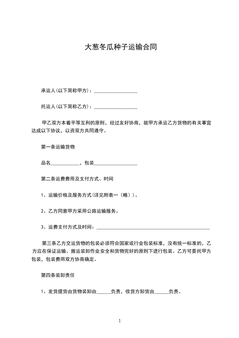一、种子的种类、品种、质量、数量、金额: