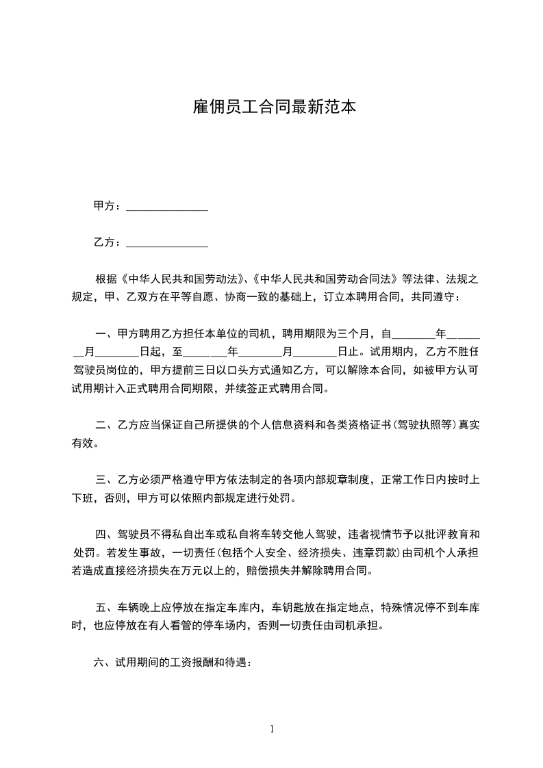 乙方(雇员):_________________身份证号:_________________