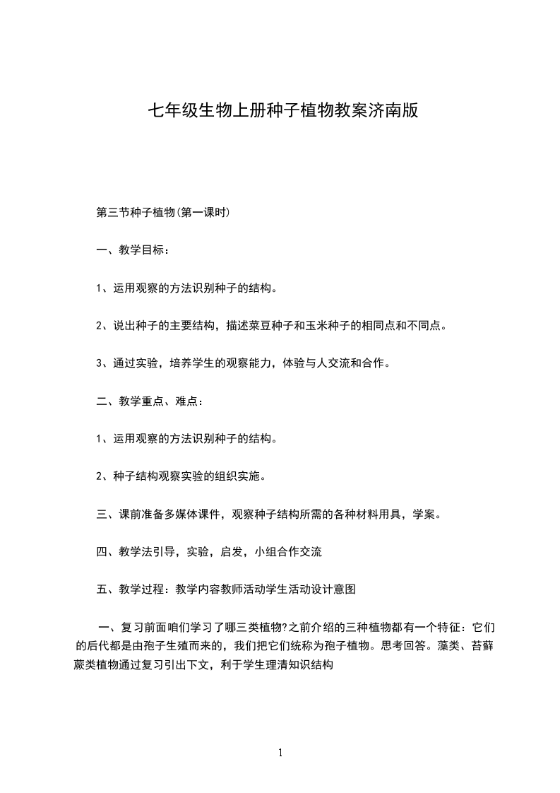 第一章第二节种子植物教学目标1.说出种子的主要结构,描述菜豆种子和玉米种子的相同点和不同点。