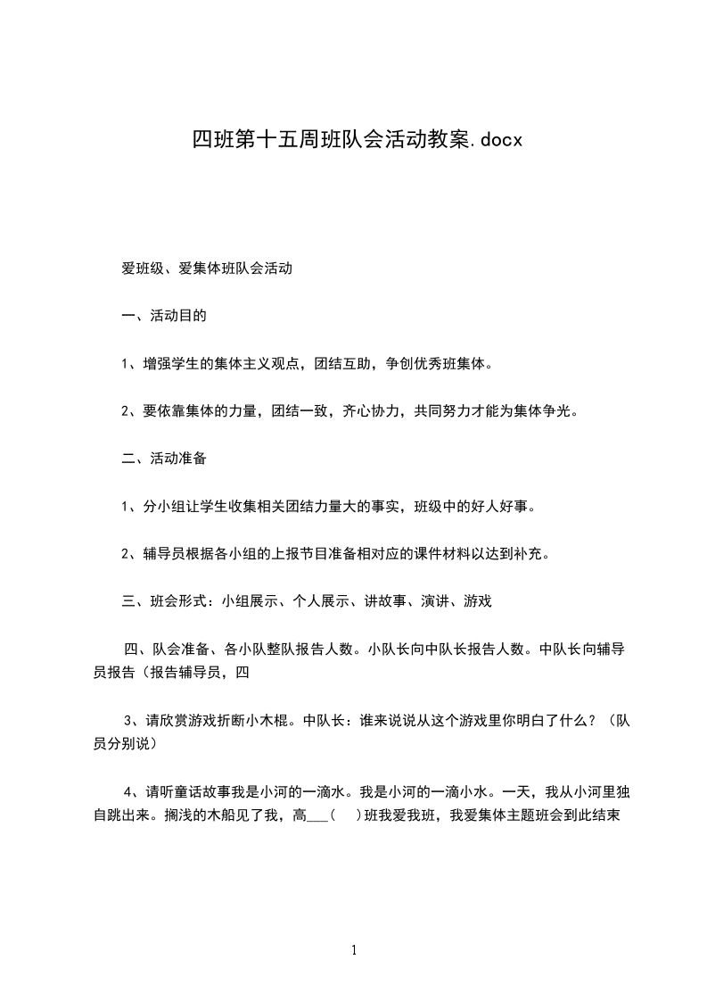 4、请听童话故事我是小河的一滴水。我是小河的一滴小水。一天,我从小河里独自跳出来。搁浅的木船见了我,高___( )班我爱我班,我爱集体主题班会到此结束。